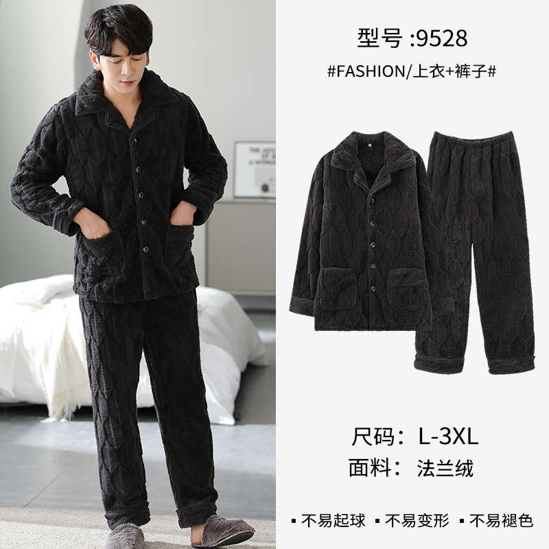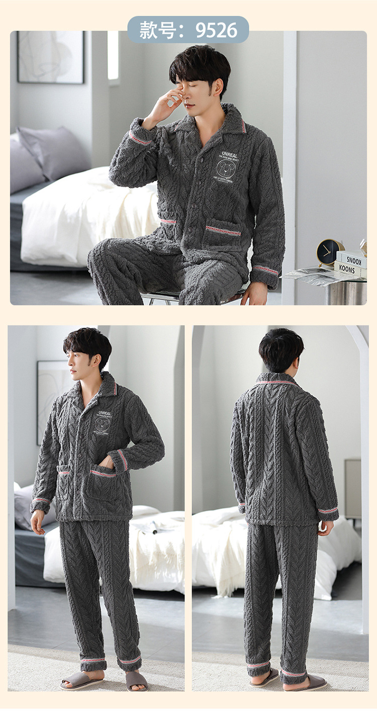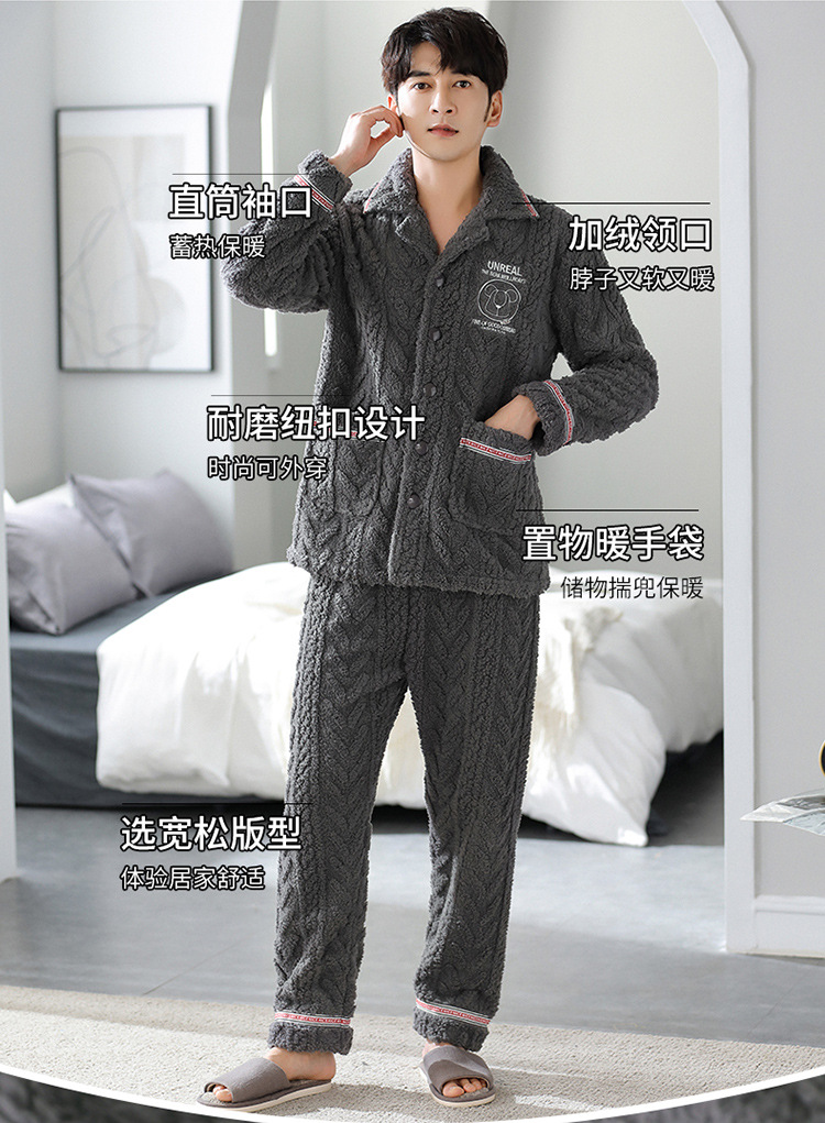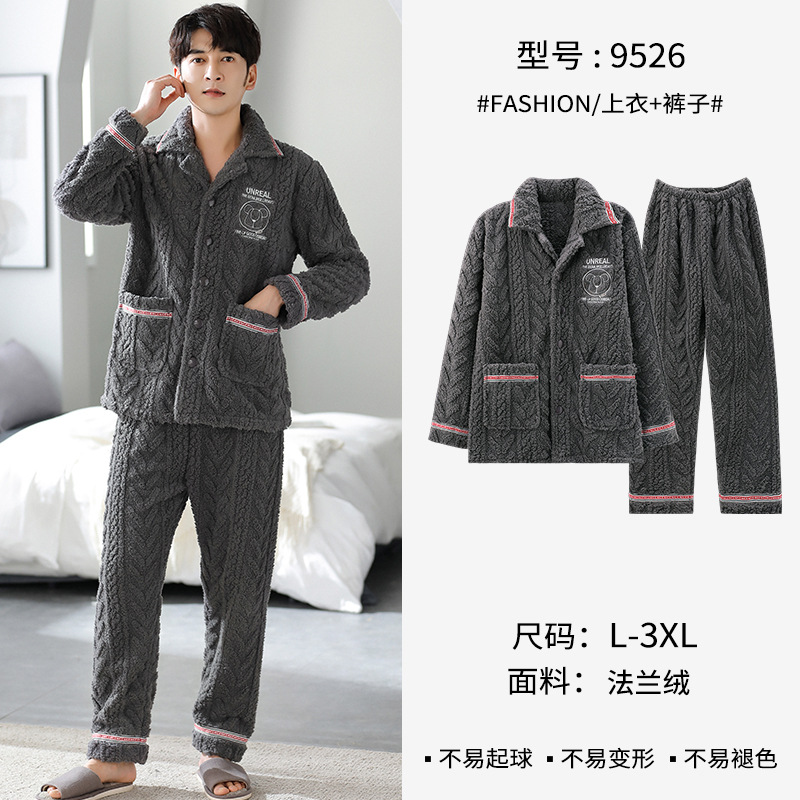 [깨진 크기 복지] 가을과 겨울 두꺼운 남성 플란넬 파자마 카디건 옷깃 따뜻한 산호 양털 홈 옷