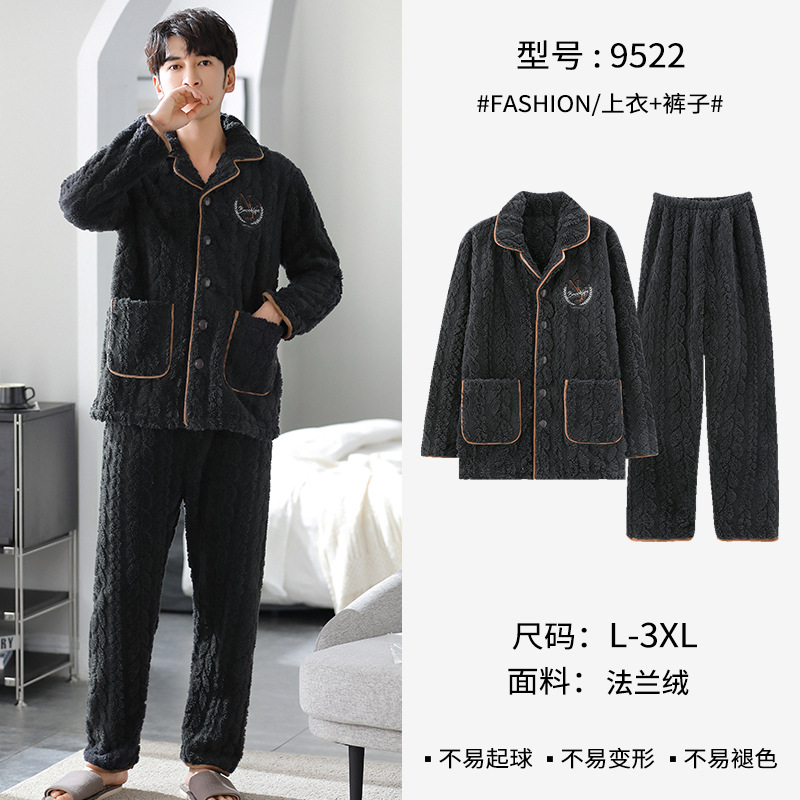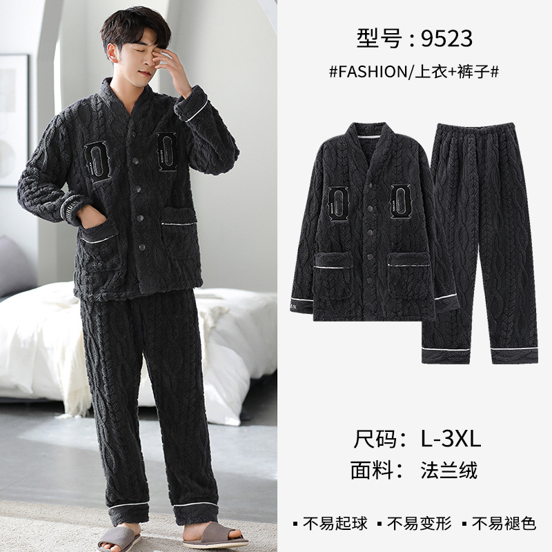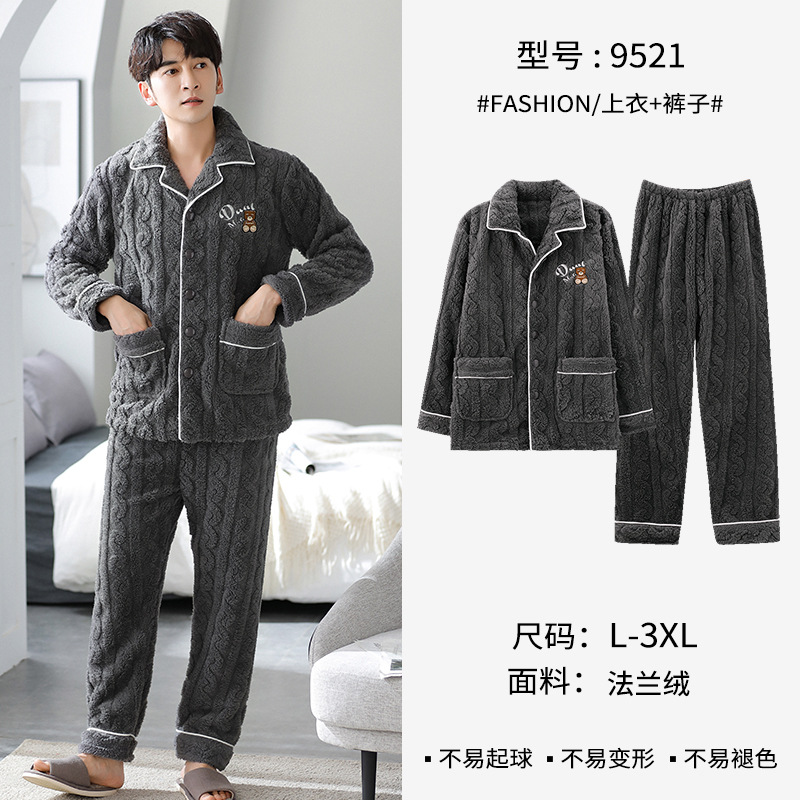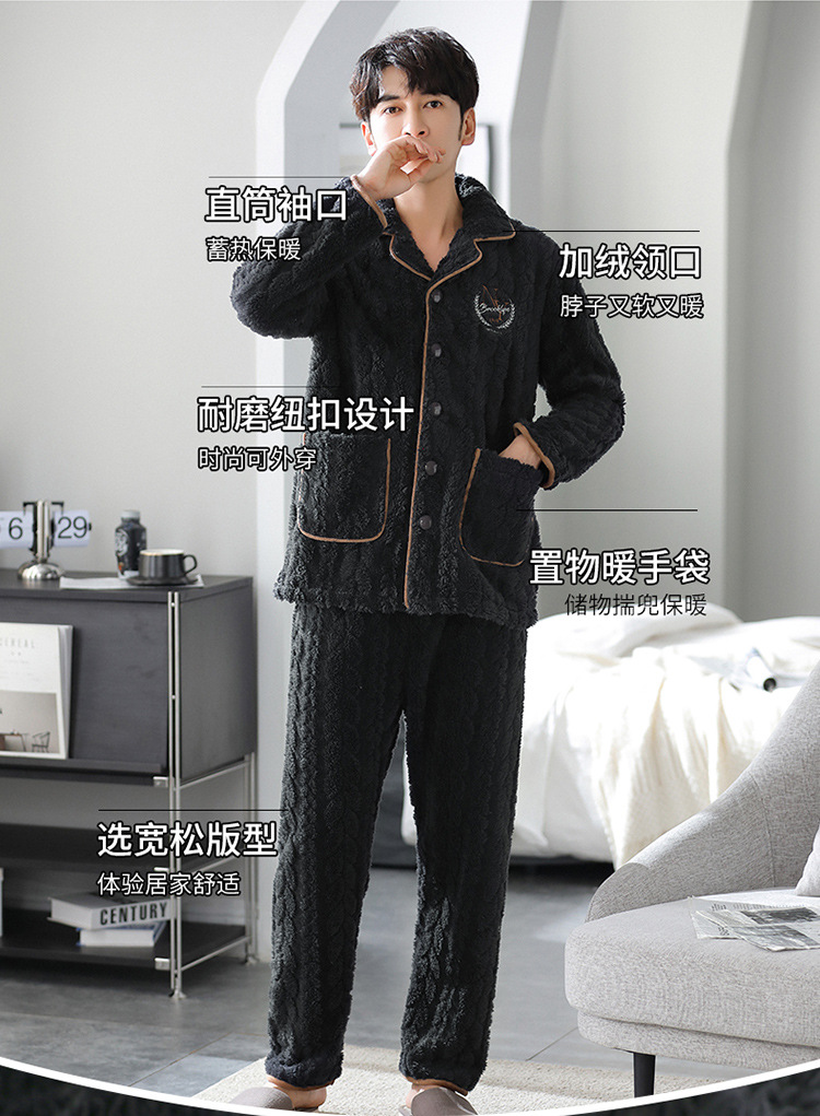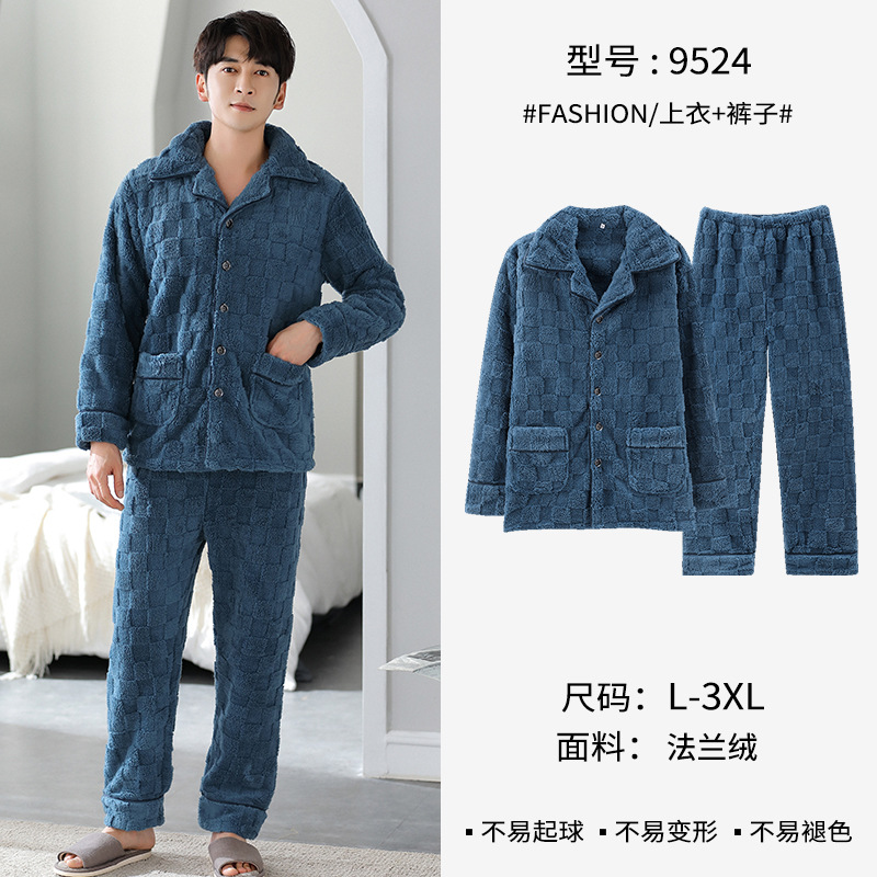 [깨진 크기 복지] 가을과 겨울 두꺼운 남성 플란넬 파자마 카디건 옷깃 따뜻한 산호 양털 홈 옷