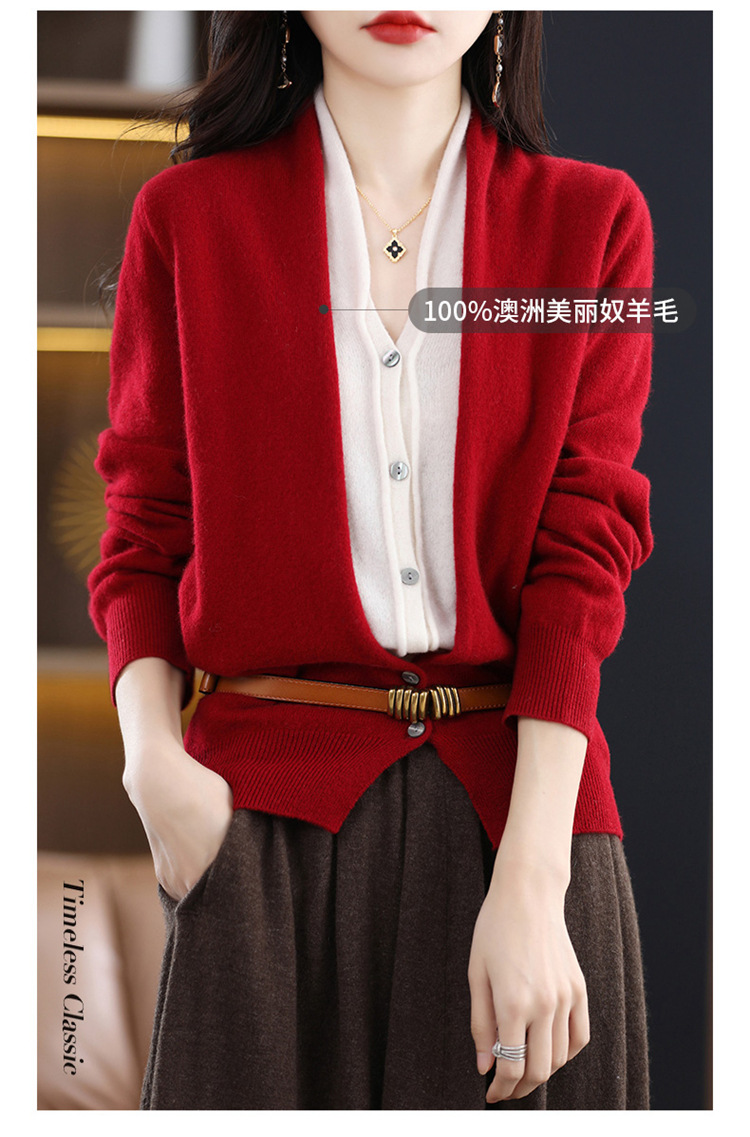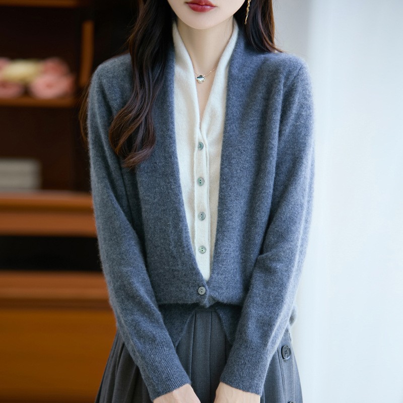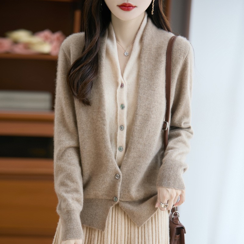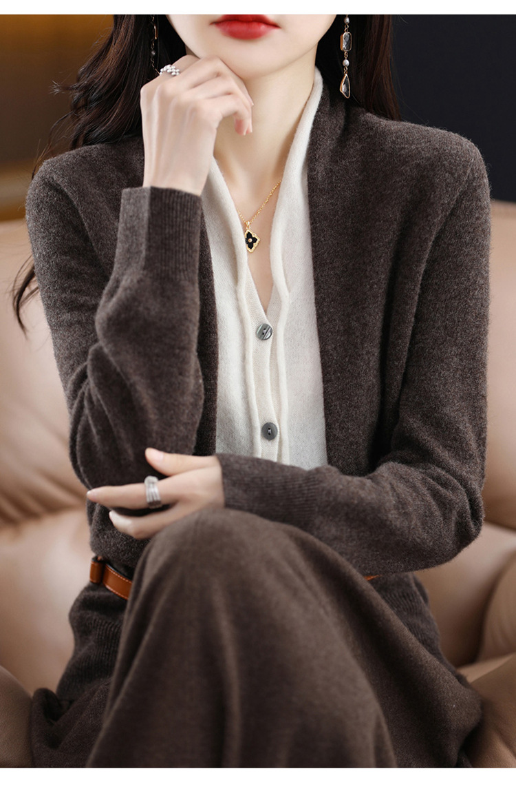 가을과 겨울 새로운 가짜 투피스 울 가디건 여성용 V-넥 니트 베이스 재킷 스웨터 긴팔 베이스 셔츠 루즈한 트렌디