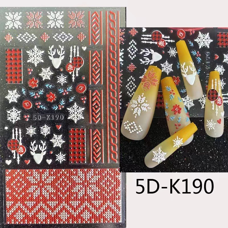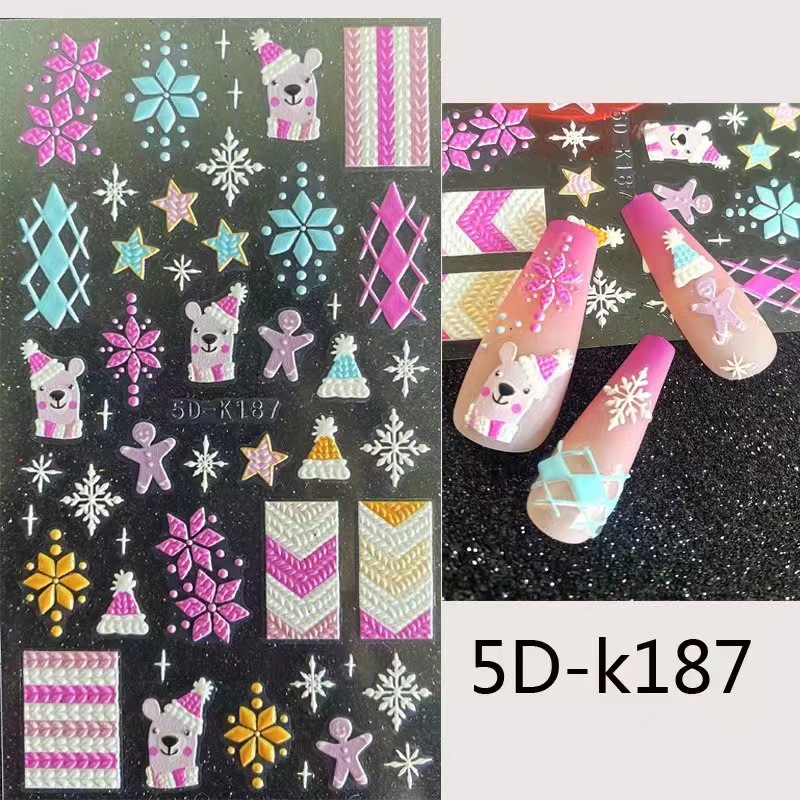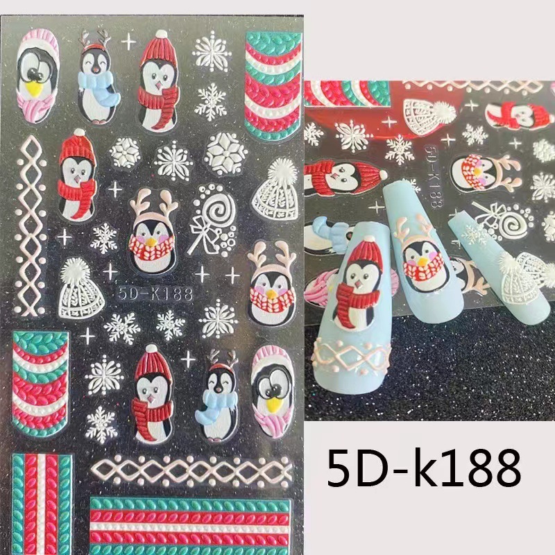 네일 아트 스티커 입체 구호 크리스마스 시리즈 펭귄 눈사람 눈송이 5D-K189 접착제 포장 포함