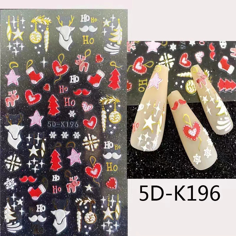 네일 아트 스티커 입체 구호 크리스마스 시리즈 펭귄 눈사람 눈송이 5D-K189 접착제 포장 포함스토어 가기