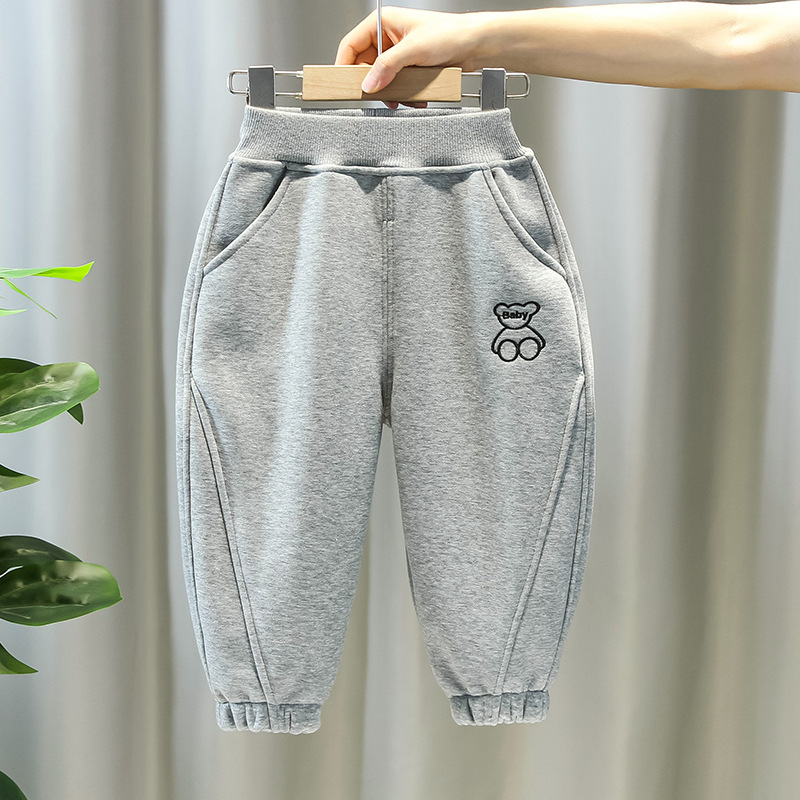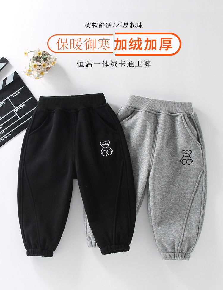 소년 기모 바지 가을과 겨울 새로운 남성과 여성의 원피스 벨벳 바지 캐주얼 만화 발목 묶인 바지 바지스토어 가기