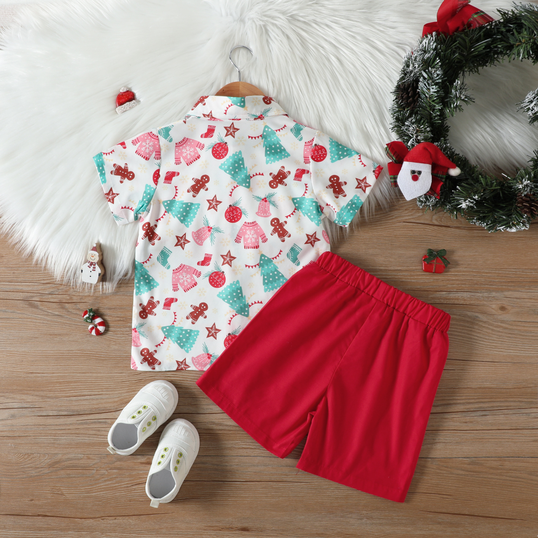 소년 크리스마스 세트 2022 유럽과 미국의 휴가 새로운 아이들 크리스마스 인쇄 반팔 셔츠 반바지 세트 도매