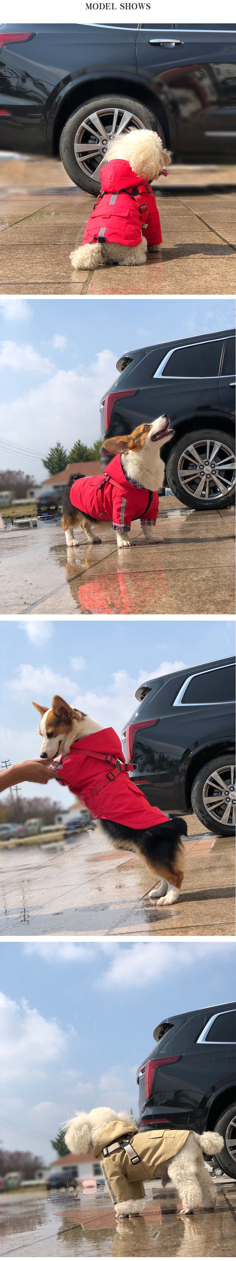 아마존 개 비옷 유니버설 가슴 뒤 PU 애완 동물 비옷 반사 개 옷 판초 애완 동물 옷 도매스토어 가기