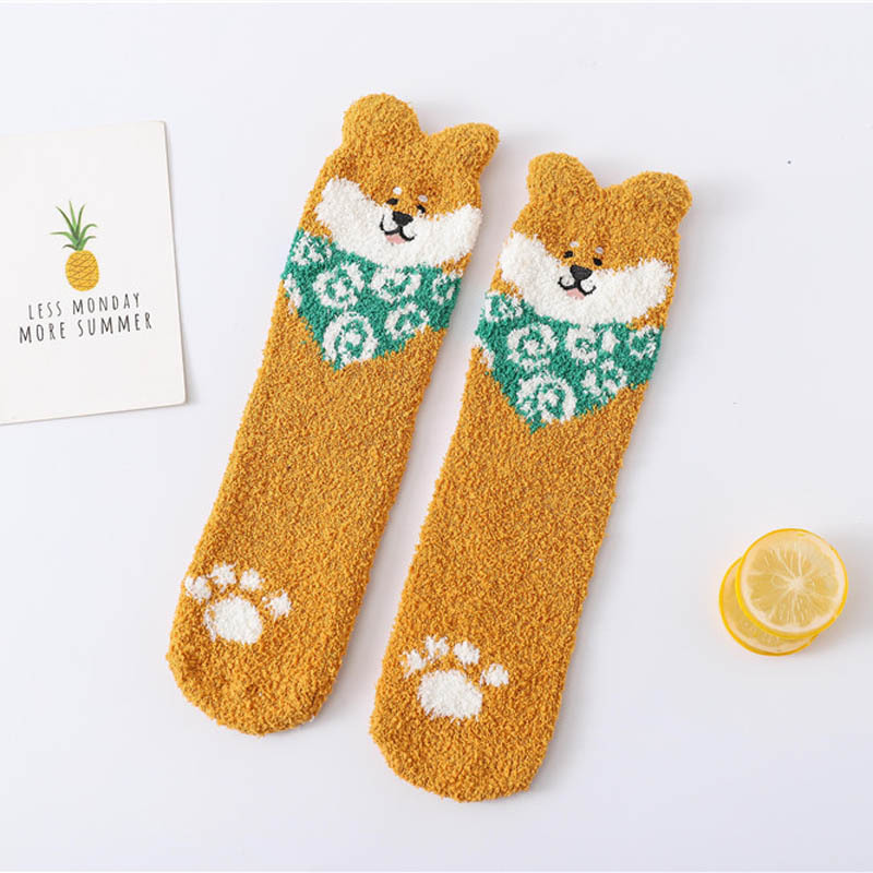 산호 벨벳 양말 여성의 새로운 유행 자수 만화 하프 벨벳 양말 두꺼운 따뜻한 3 차원 곰 수면 양말스토어 가기