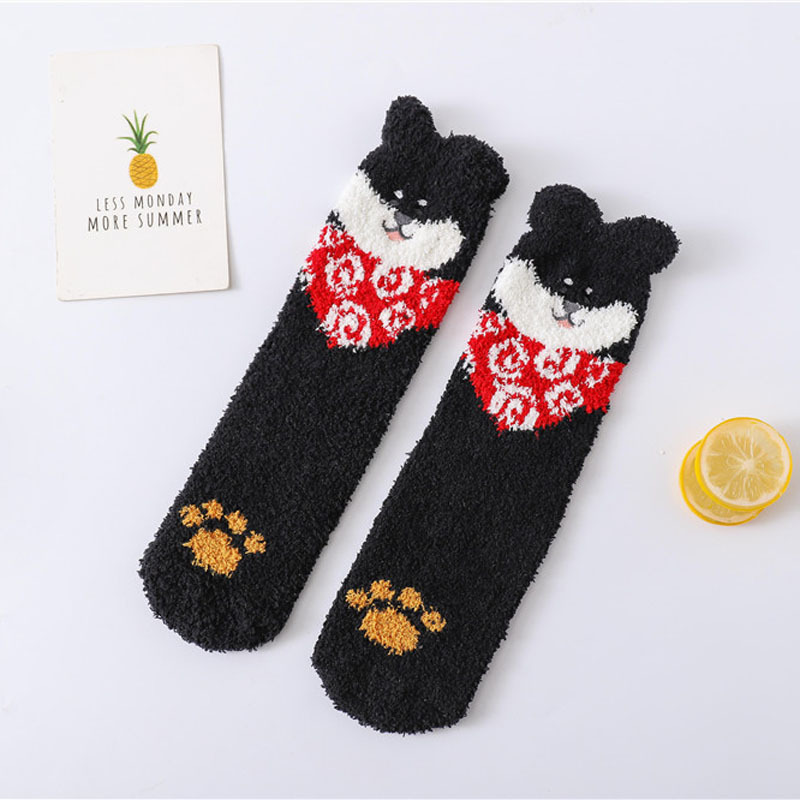 산호 벨벳 양말 여성의 새로운 유행 자수 만화 하프 벨벳 양말 두꺼운 따뜻한 3 차원 곰 수면 양말