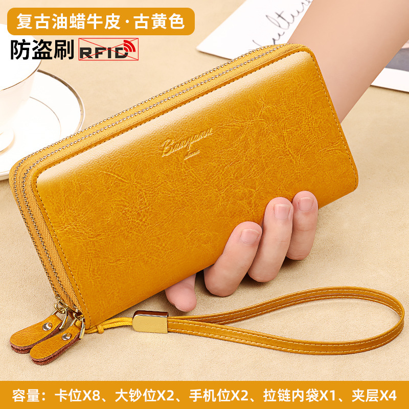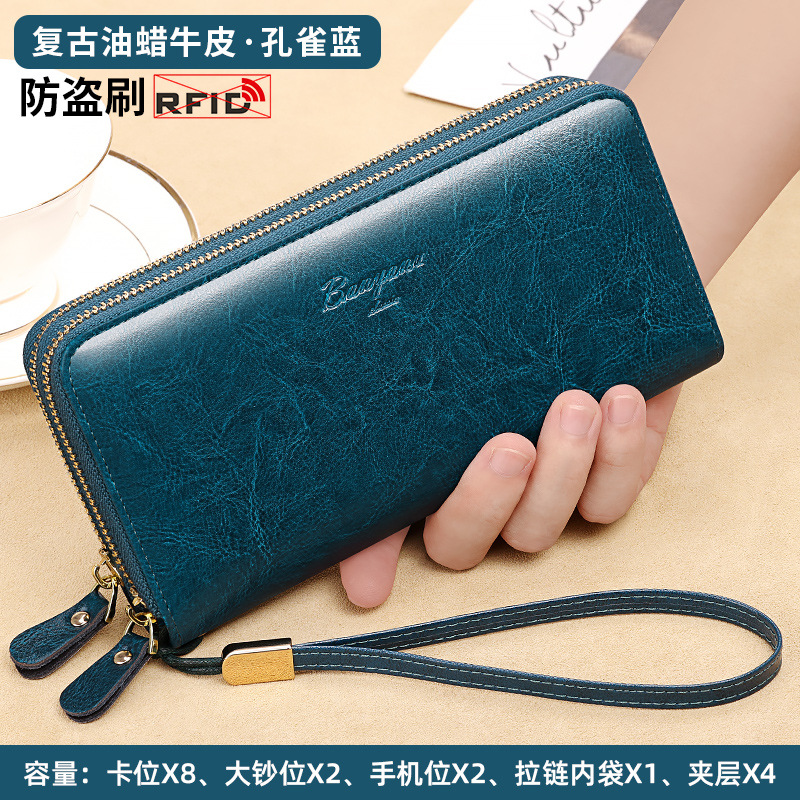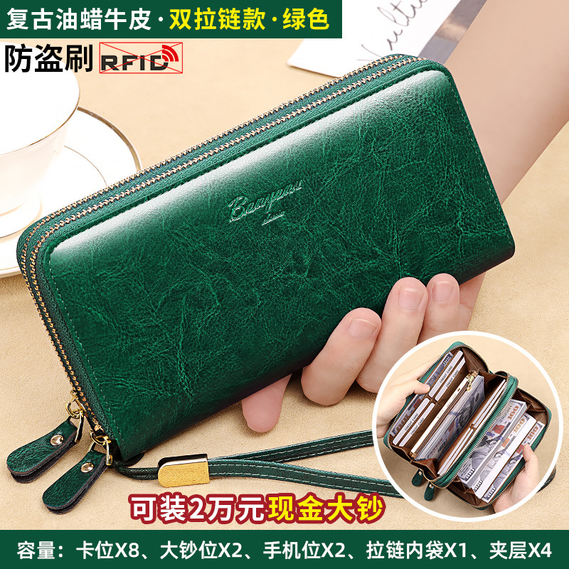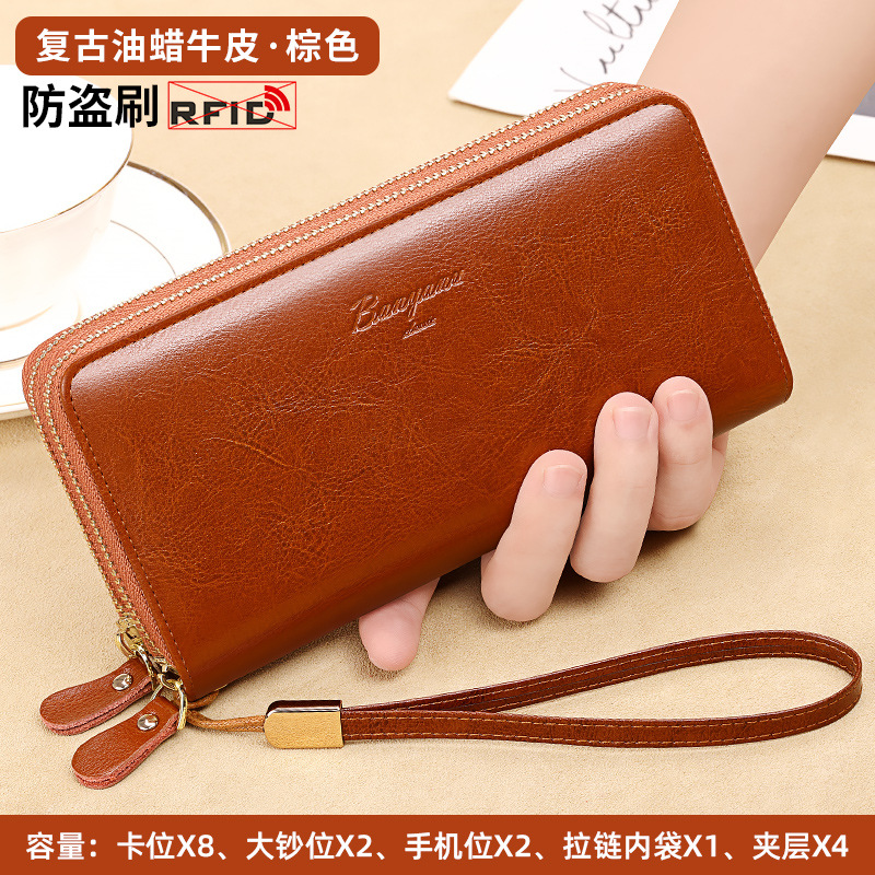국경 지갑 여성용 긴 정품 가죽 더블 지퍼 대용량 클러치 백 2025 새로운 핫 스타일 지갑 여성용 카드 홀더스토어 가기