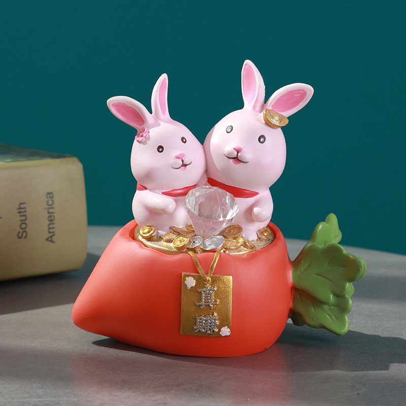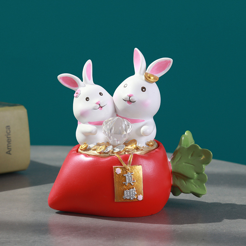 토끼의 해 만화 마스코트 미니 시뮬레이션 토끼 수지 공예 장식품 마이크로 풍경 가정 장식 선물