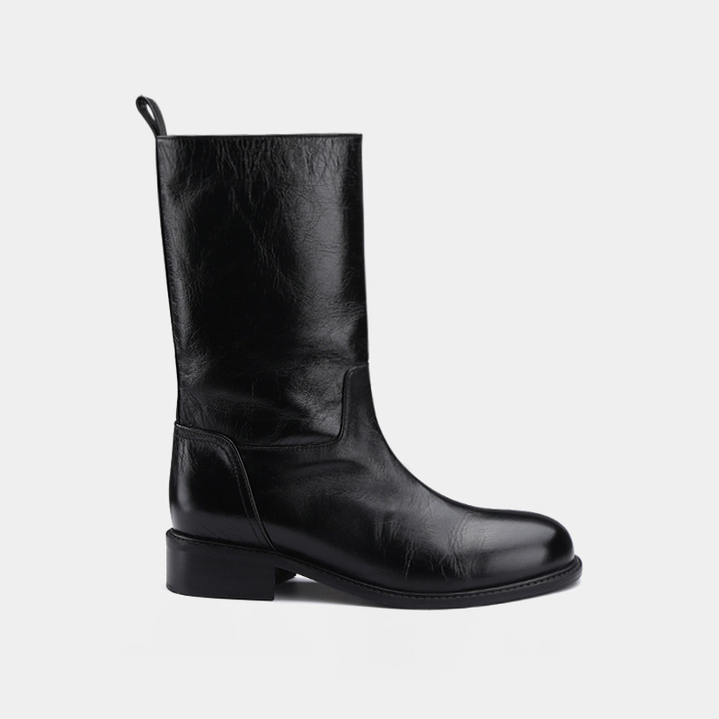 Y 버전 2025 신상 기모 HOWUS 미드탑 부츠 여성 패션 심플 슬립온 여성 부츠 다용도 플랫 마틴 부츠