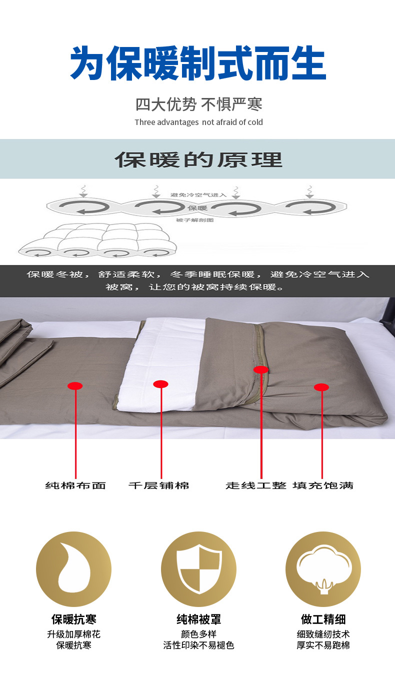 공장 도매 카키 핫멜트 이불은 학생 기숙사 겨울 퀼트에서 군사 훈련을 위해 두꺼운 따뜻한 노동자 이불스토어 가기