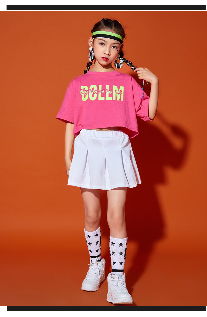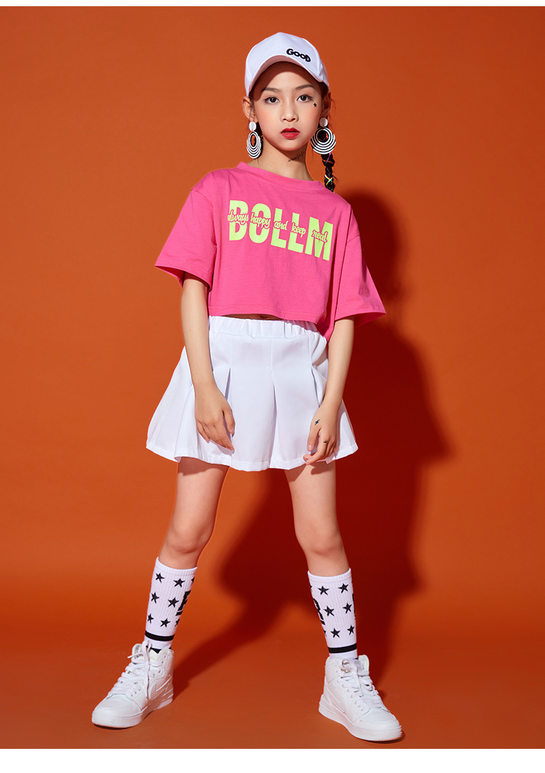 • 2105 소녀 로즈 파우더 + 화이트 스커트