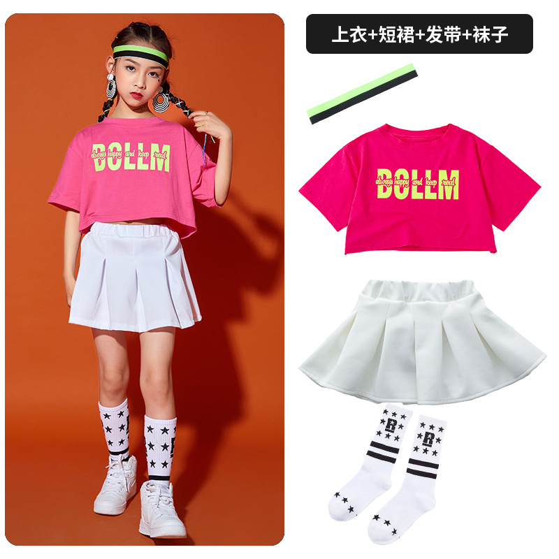 • 2105 소녀 로즈 파우더 + 화이트 스커트 + 스타 양말 + 검은 색과 녹색 헤어 밴드