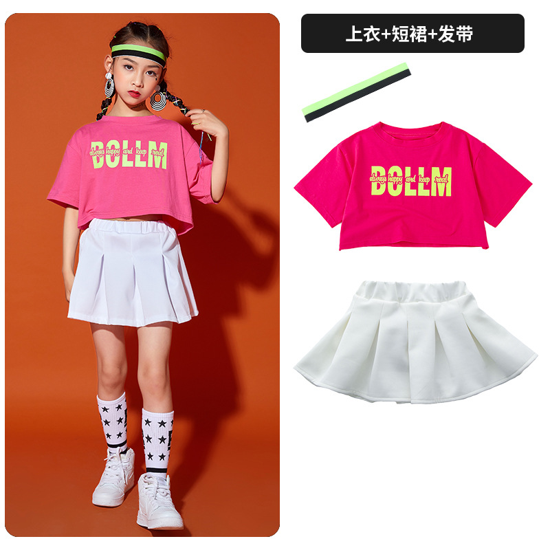 • 2105 소녀 로즈 파우더 + 흰색 스커트 + 검은 색과 녹색 헤어 밴드