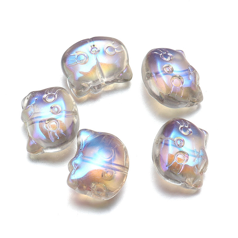 镀彩卡通猫DIY配件散珠,尺寸:15x13mm,孔径:1.3mm