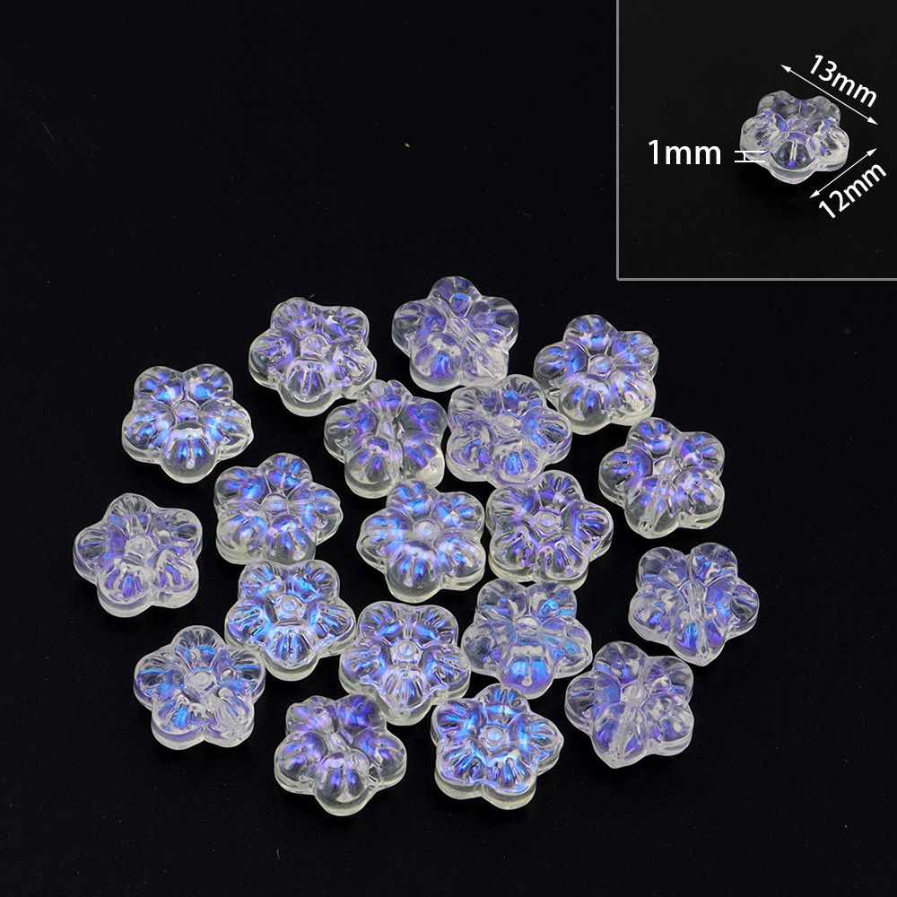 镭射花朵DIY珠子,尺寸:12mm,孔径:1mm,35g