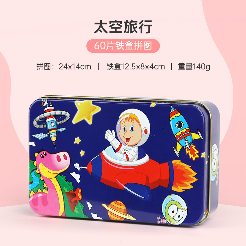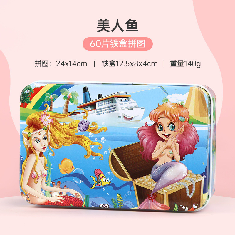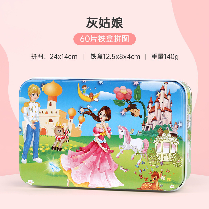 새로운 철 상자 나무 섬유판 만화 직소 퍼즐 개발 소년 소녀 실속 장난감 60 개 도매