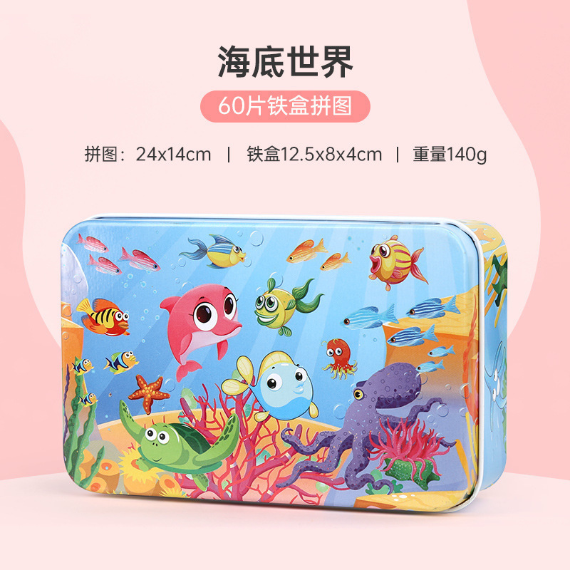 새로운 철 상자 나무 섬유판 만화 직소 퍼즐 개발 소년 소녀 실속 장난감 60 개 도매스토어 가기