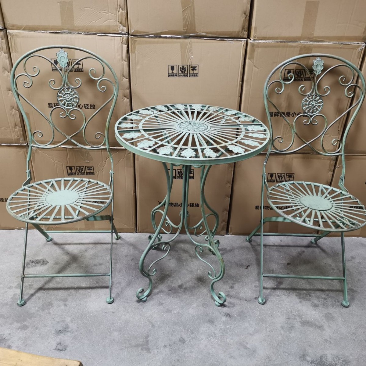미국 국가 야외 레저 테이블과 의자 조합 홈 발코니 안뜰 단철 빈티지 오래된 원형 테이블 의자스토어 가기