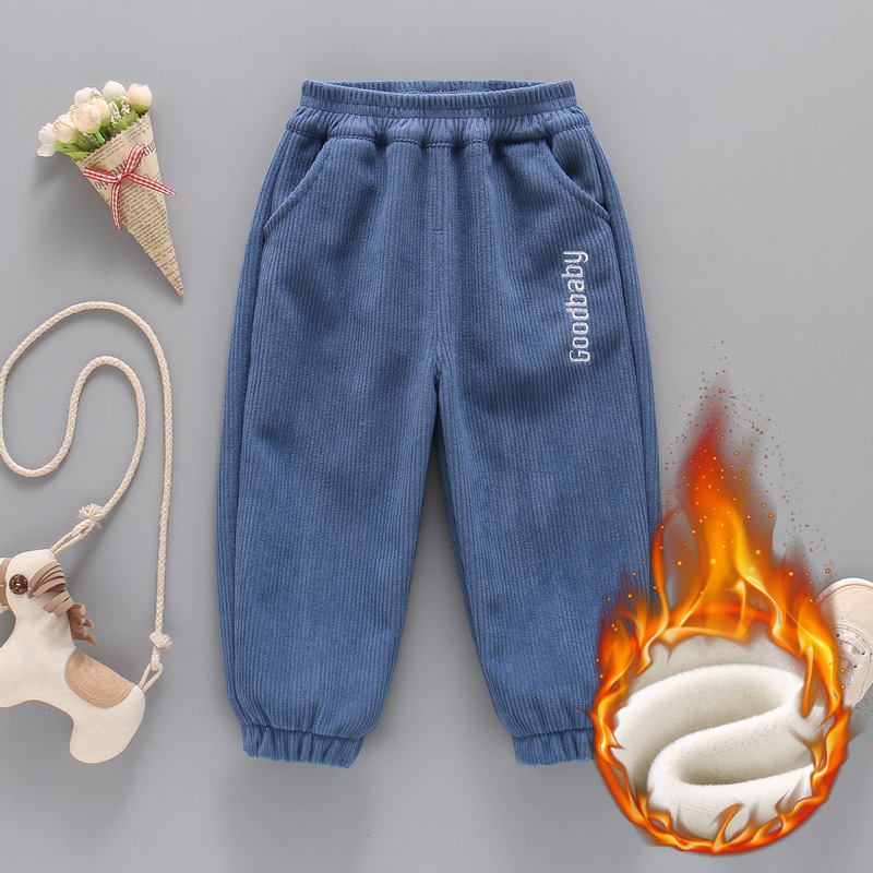 남아 코듀로이 바지 기모 두꺼운 겨울 새 편지 자수 원피스 벨벳 따뜻한 바지