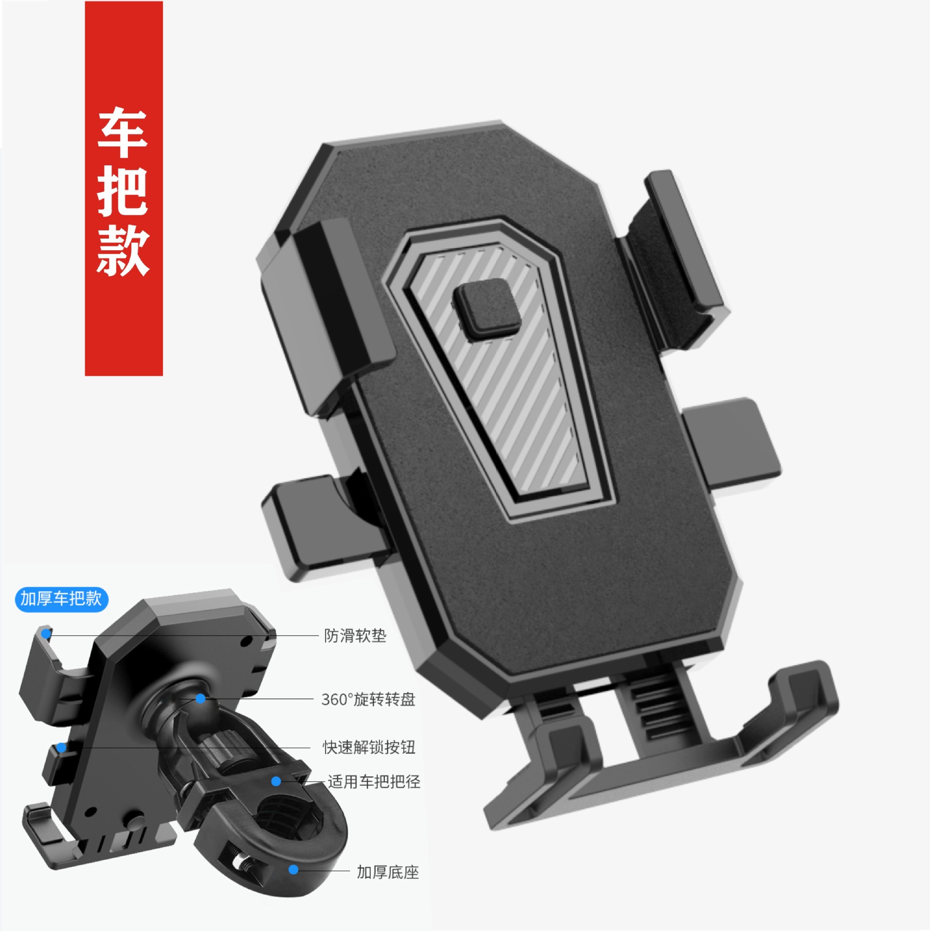 새로운 크로스 보더 오토바이 휴대 전화 브래킷 테이크 아웃 라이더 내비게이션 전기 자전거 충격 방지 휴대 전화 랙 도매