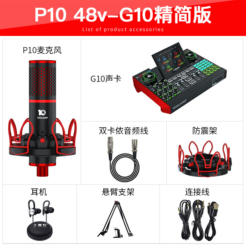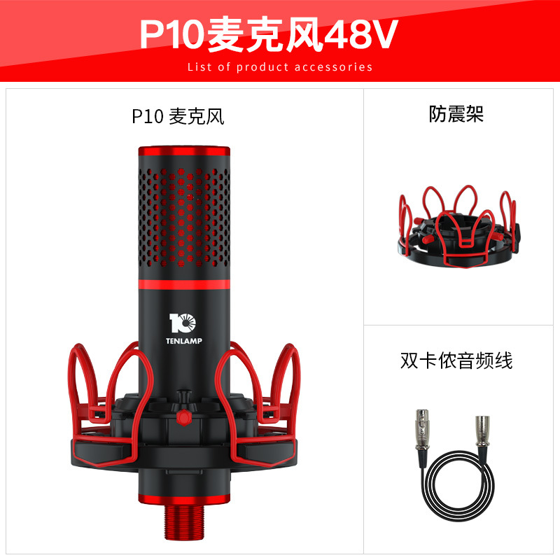 라이브 장비의 10 등 P10 마이크 48V 콘덴서 마이크 세트 휴대 전화 컴퓨터 범용 풀 세트