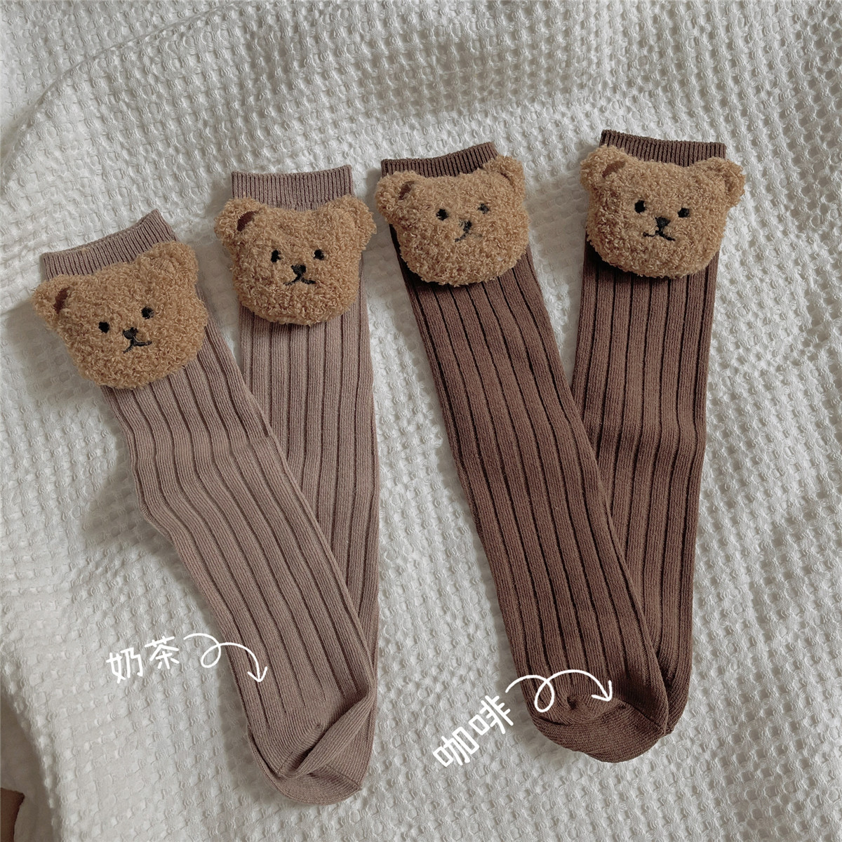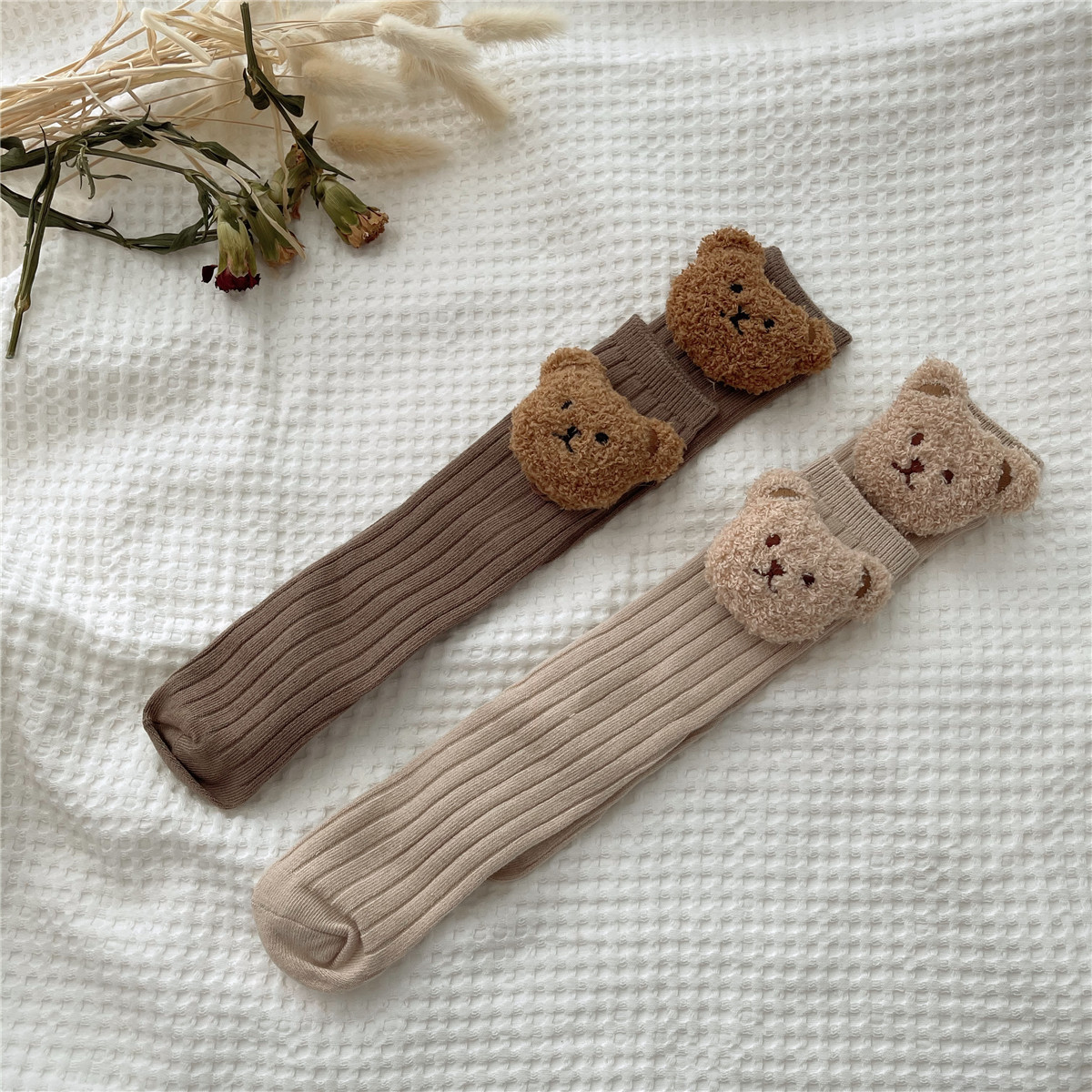 스타일 한국 스타일 어린이의 귀여운 곰 머리 스타킹 아기 소년과 소녀 가을과 겨울 면 양말 미드 튜브 양말스토어 가기