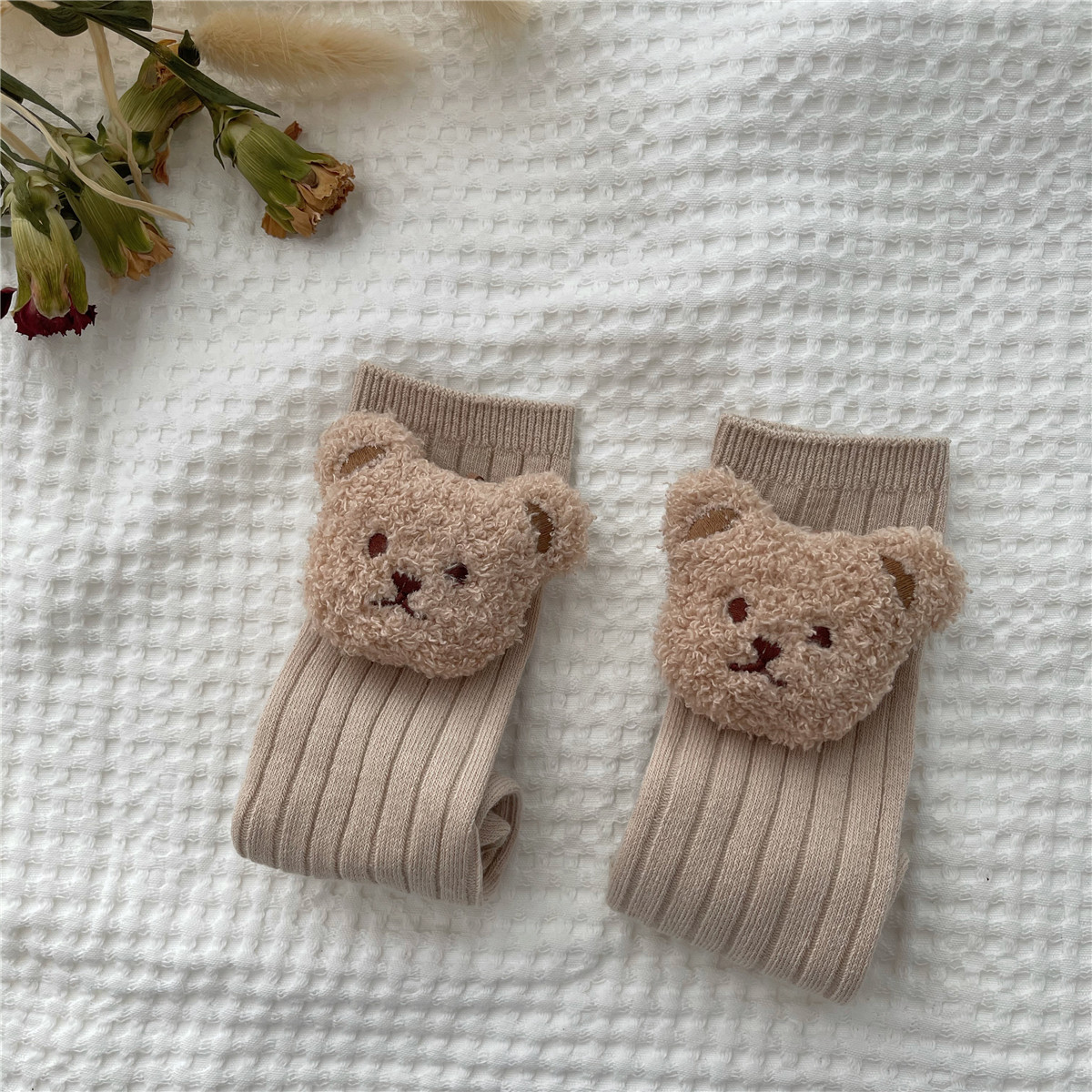 스타일 한국 스타일 어린이의 귀여운 곰 머리 스타킹 아기 소년과 소녀 가을과 겨울 면 양말 미드 튜브 양말