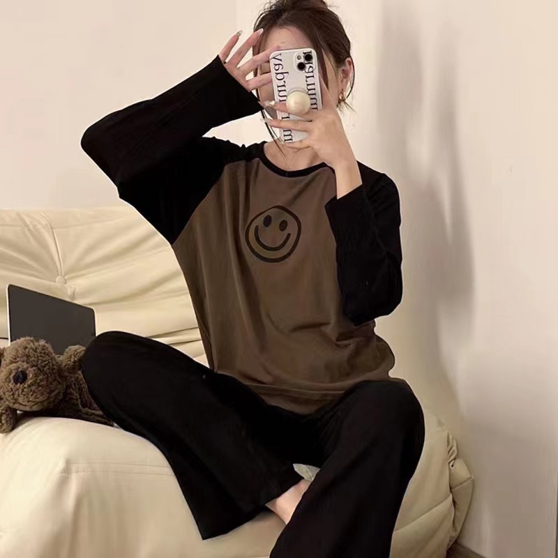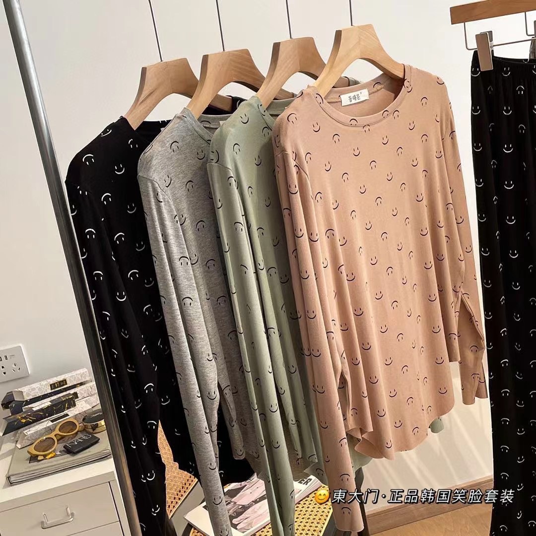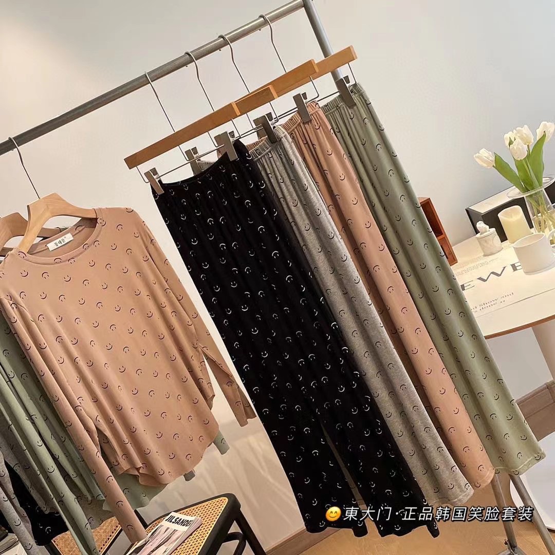 동대문 정품 한국 스마일 세트 라이브 인기상품 2025 여성용 잠옷 부드럽고 피부 친화적인 스포츠 홈웨어 여성용스토어 가기