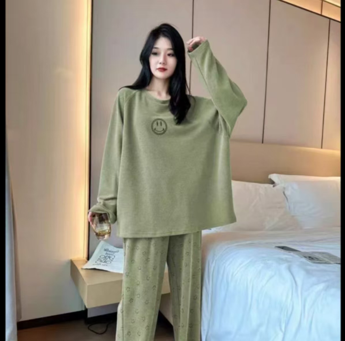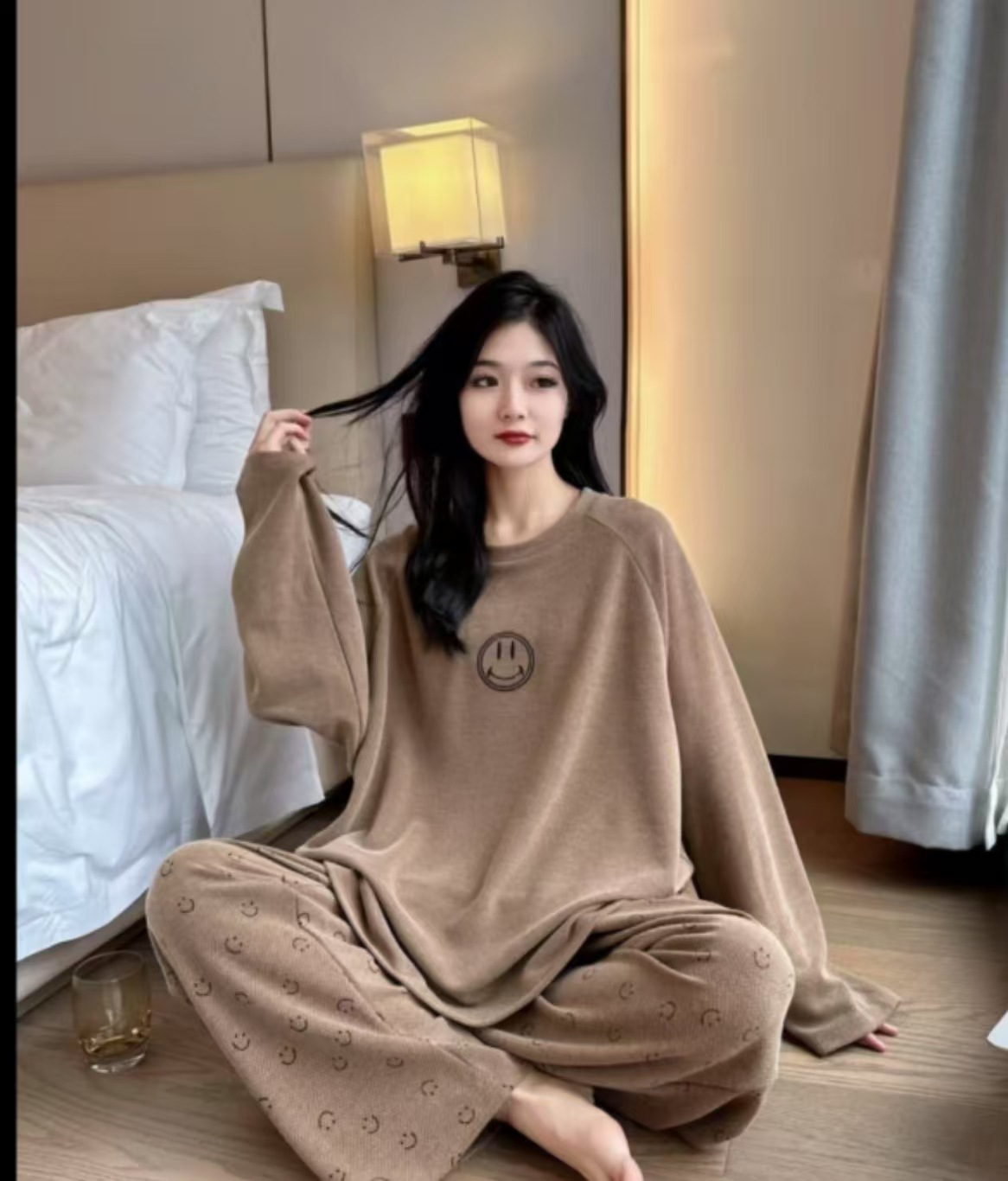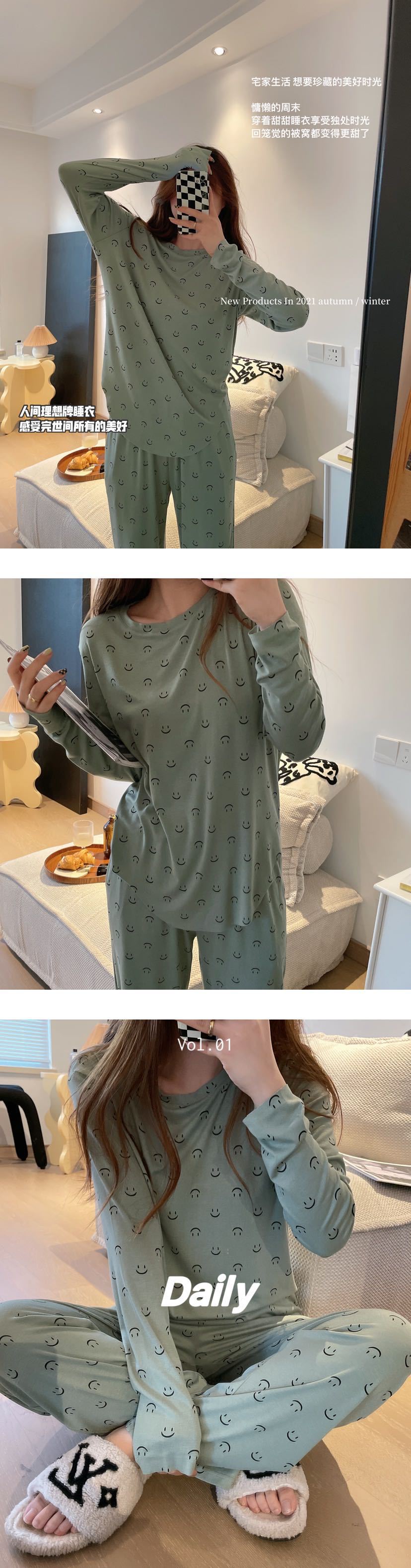 동대문 정품 한국 스마일 세트 라이브 인기상품 2025 여성용 잠옷 부드럽고 피부 친화적인 스포츠 홈웨어 여성용스토어 가기