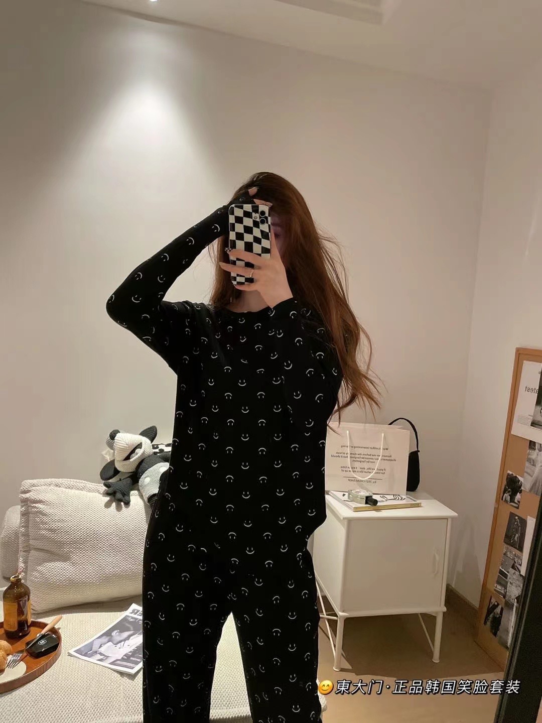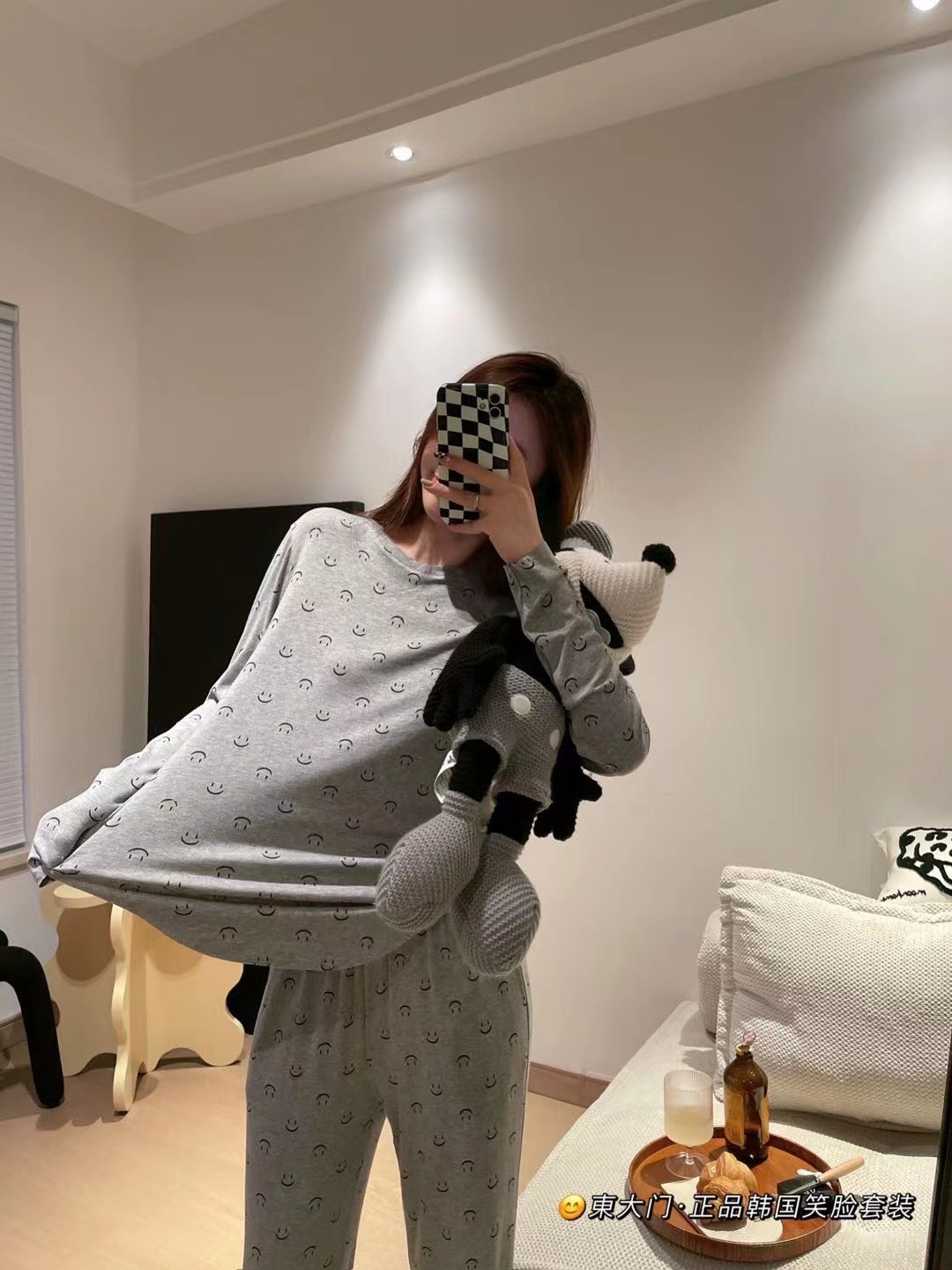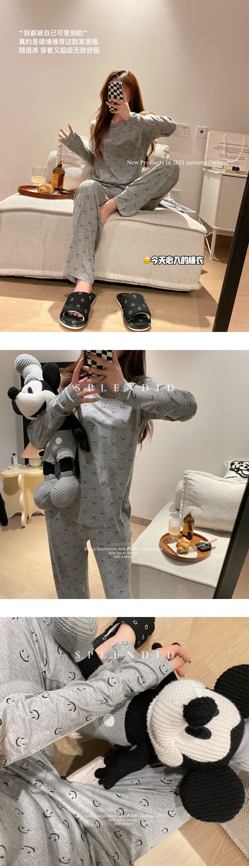 동대문 정품 한국 스마일 세트 라이브 인기상품 2025 여성용 잠옷 부드럽고 피부 친화적인 스포츠 홈웨어 여성용