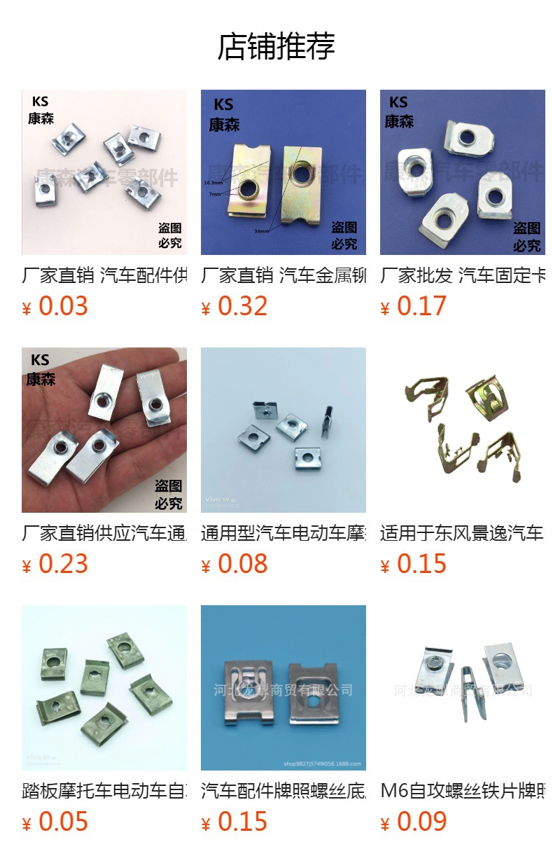 공장 직접 판매 자동차 부품 공급 장식 나사 금속 버클 유니버설 철 시트 빠른 와이어 가스켓 다양한 산업스토어 가기