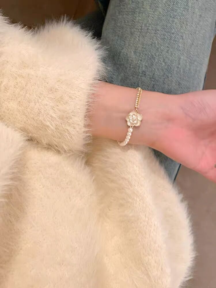 우유는 동백 진주 팔찌 여성 in2023 가을과 겨울 새로운 틈새 디자인 감각 여자 친구 간단한 기질