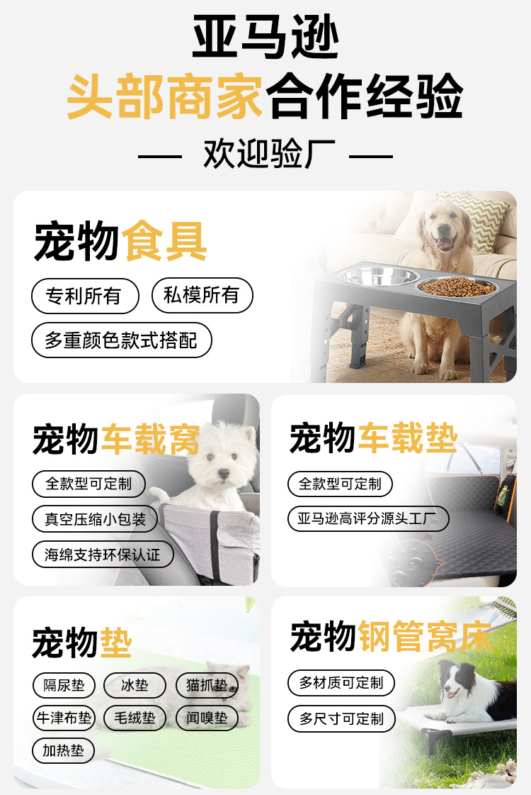 我们是一家专业生产宠物出行用品的厂家。以10年的专注经验,与亚马逊头部商家达成合作。