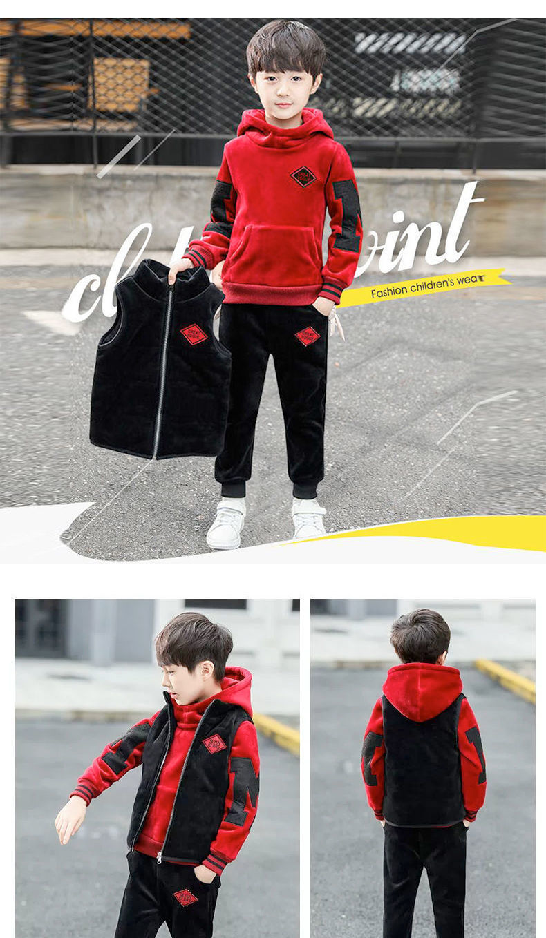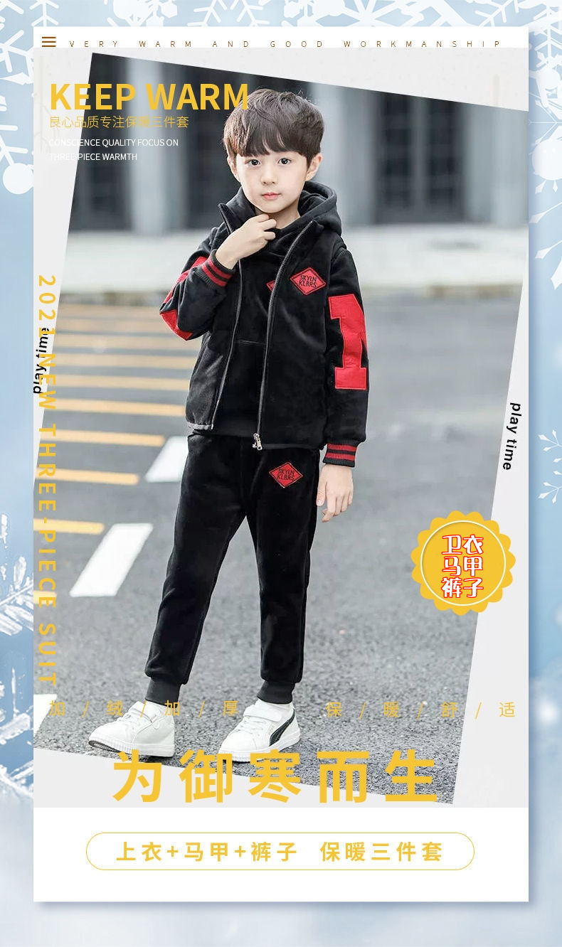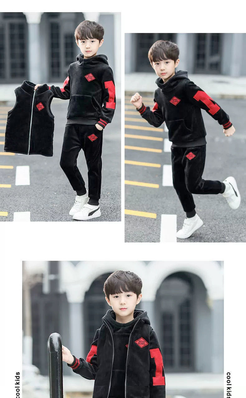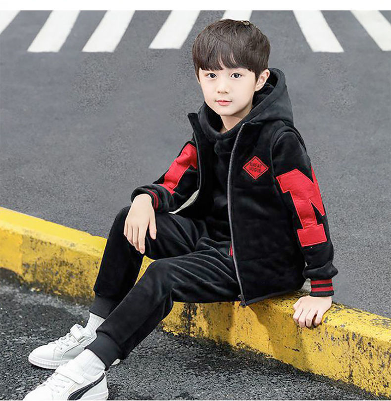 남아용 세트, 기모 및 두꺼운 소재, 가을 겨울 의류, 2025년 신상, 중대형 어린이 의류, 남아용 스웨트셔츠 3종 세트, 멋지고 트렌디함스토어 가기