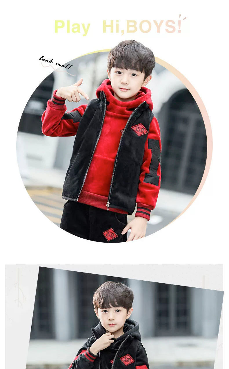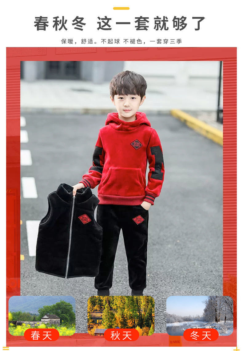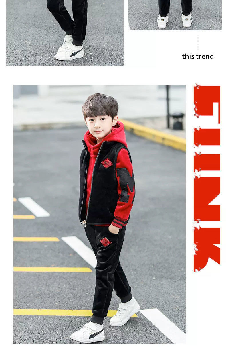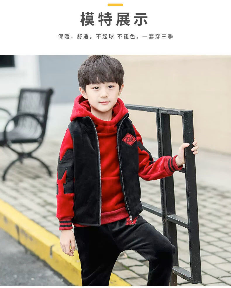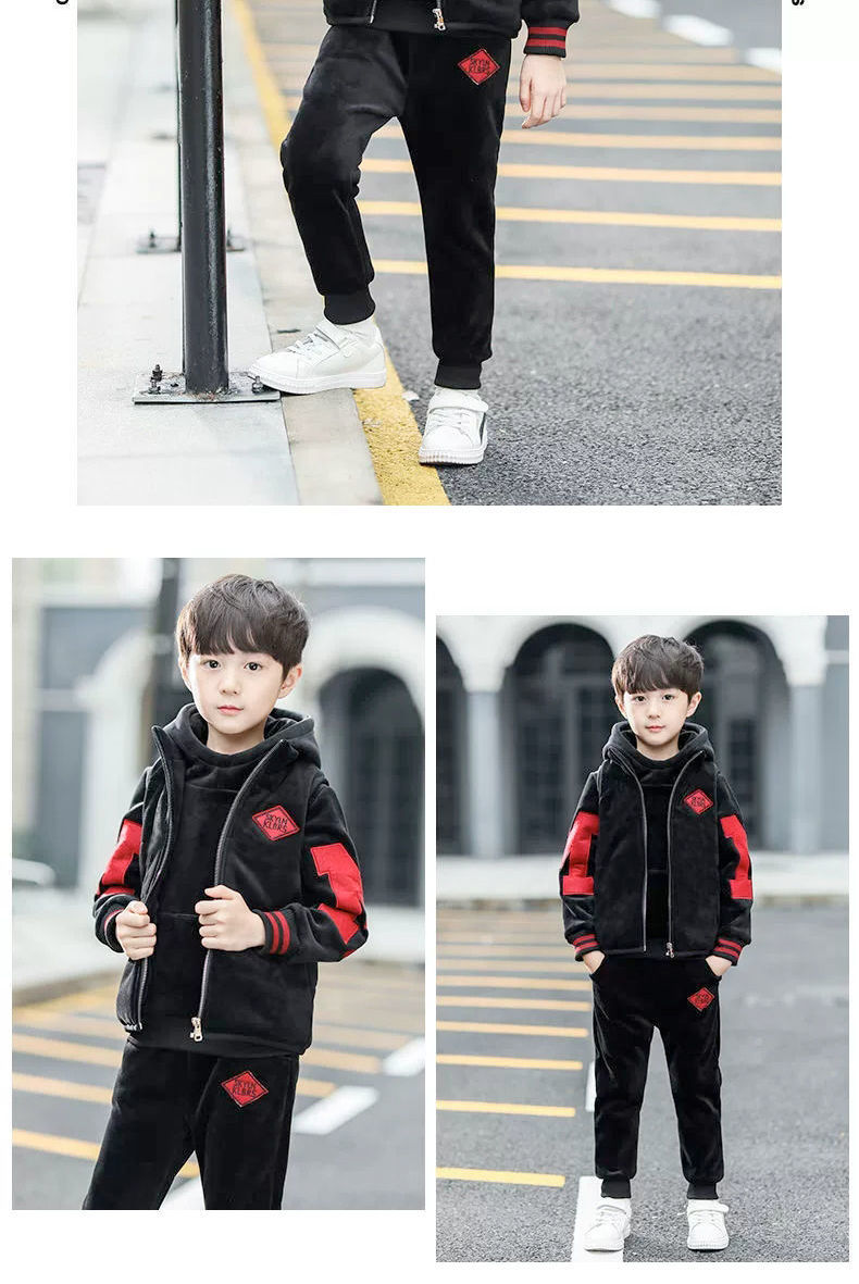 남아용 세트, 기모 및 두꺼운 소재, 가을 겨울 의류, 2025년 신상, 중대형 어린이 의류, 남아용 스웨트셔츠 3종 세트, 멋지고 트렌디함스토어 가기
