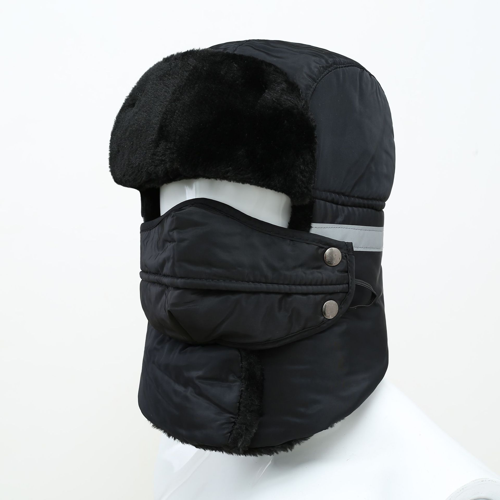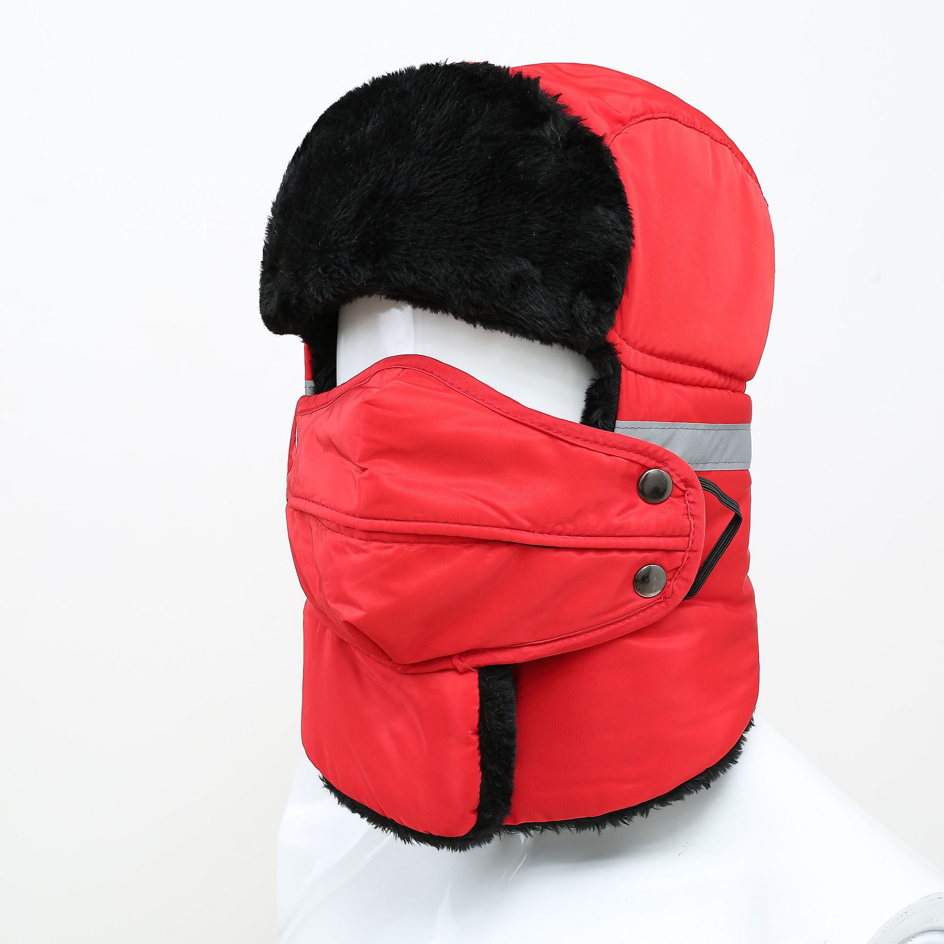 겨울 모자 반사 스트립 레이 펑 모자 남자와 여자의 모자 타고 전기 자동차 기모 방풍 모자 방한 두꺼운 따뜻한 면 모자 귀 보호
