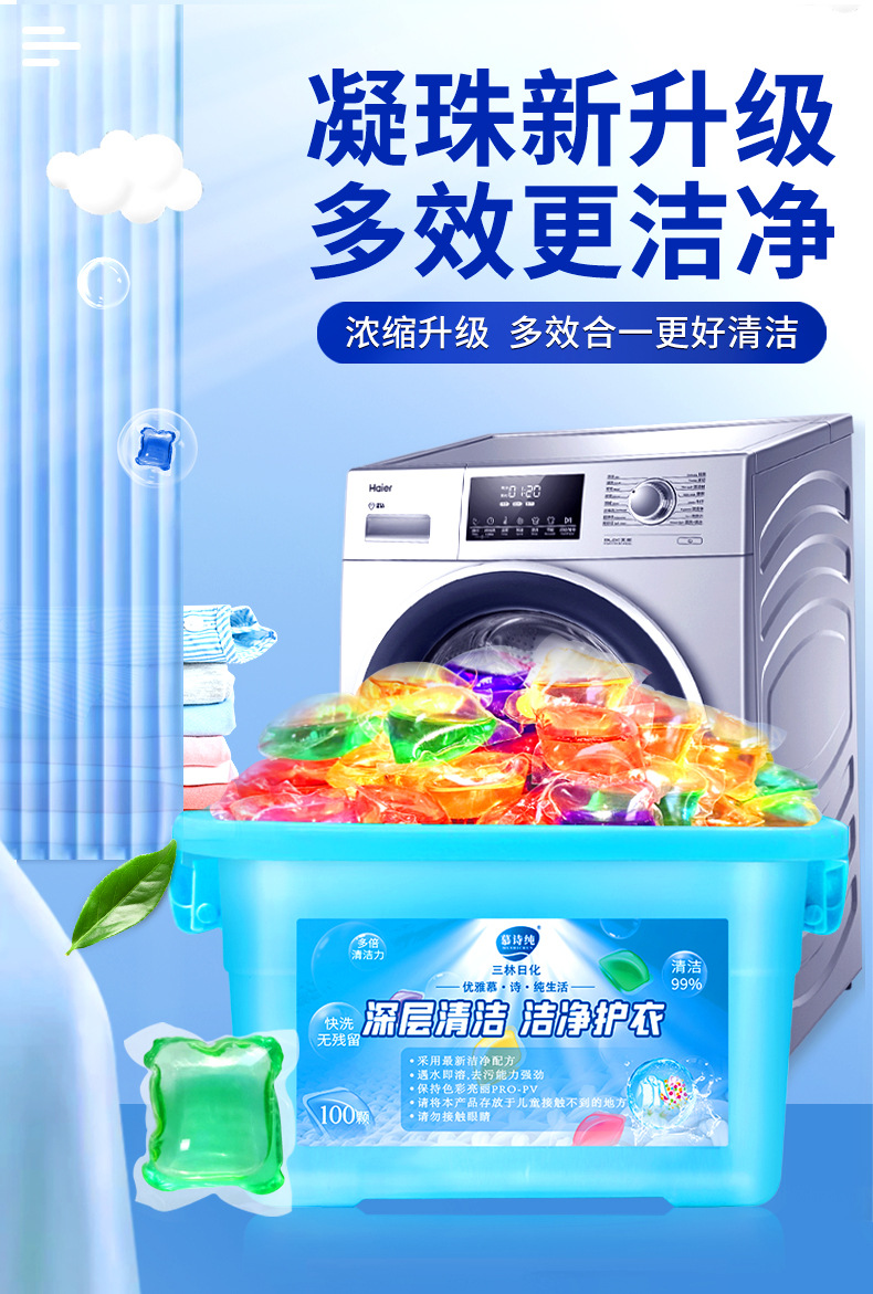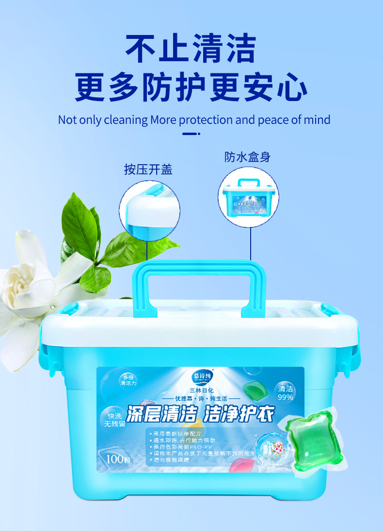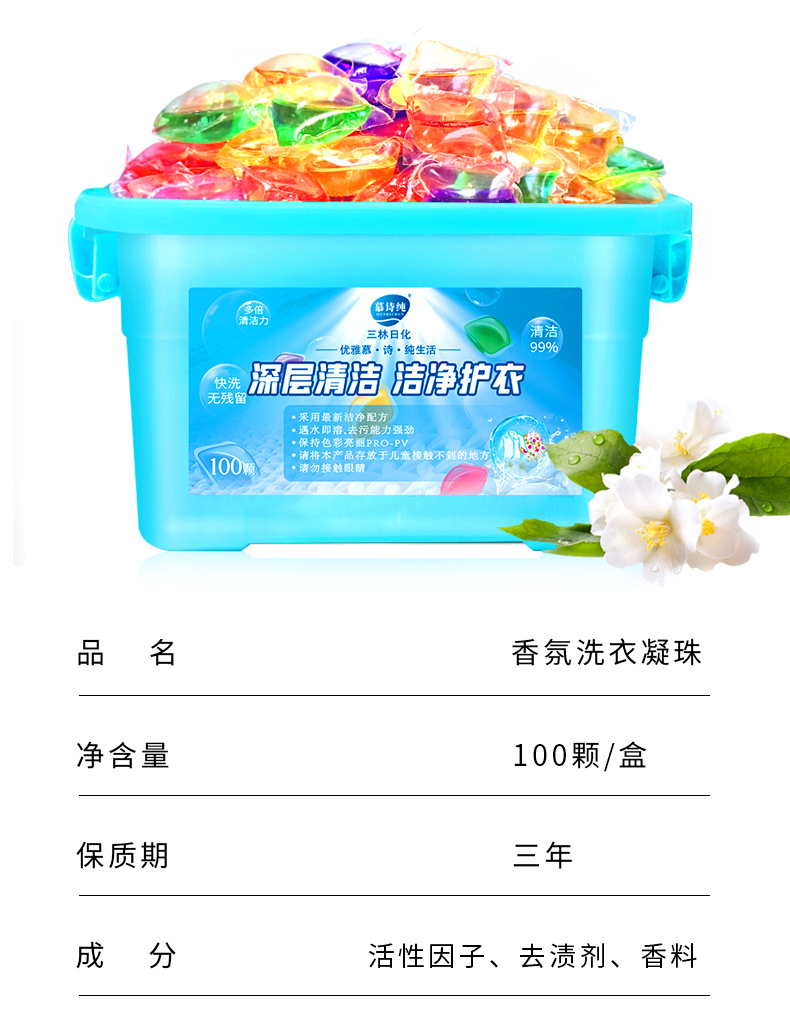 세탁비즈 5g 100개 박스형 농축제염, 부드럽고 깨끗하며 오래 지속되는 향기 세탁비즈 제조업체에서 배송