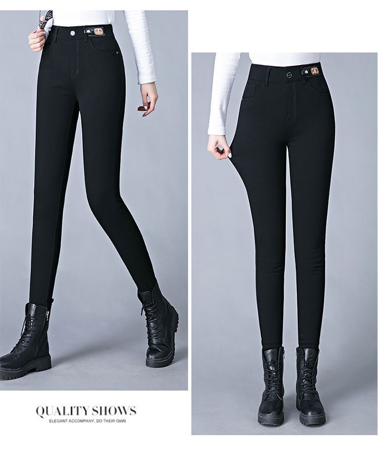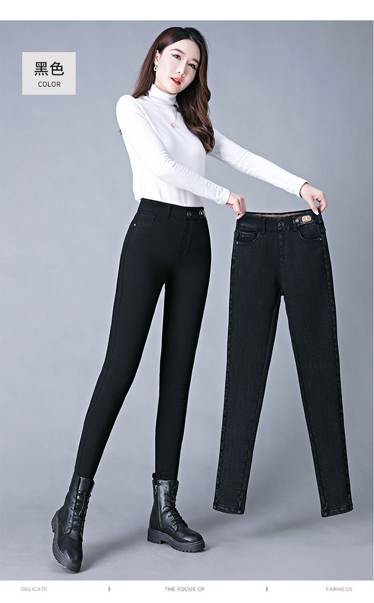 도매 기모 안감 두꺼운 여성용 청바지 2025 신상 하이웨이스트 펜슬 팬츠 신축성 높은 다용도 슬림핏 블랙 스키니스토어 가기