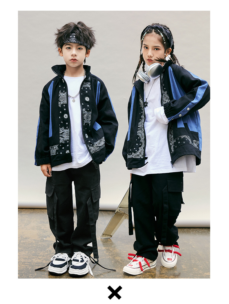 소년 힙합 힙합 힙합 공연 옷 소녀의 멋진 잘 생긴 느슨한 색상과 세련된 옷 어린이 힙합 트렌디 한 패션쇼 의류