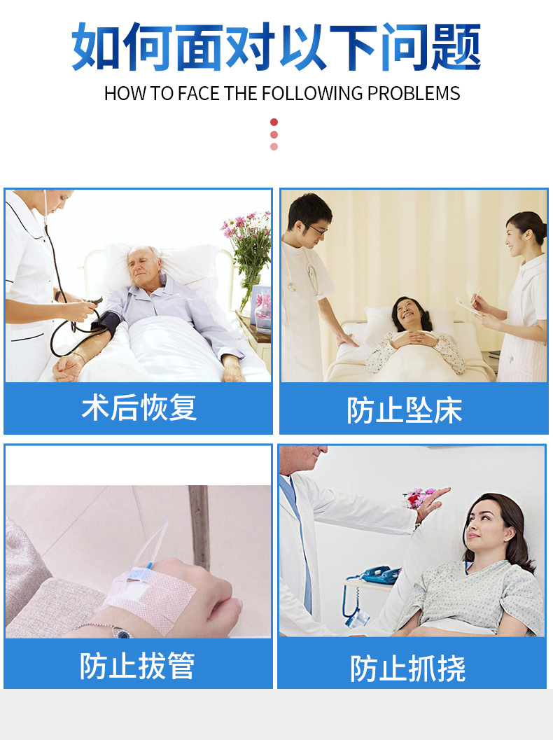 손목과 발목 병상 손 바인딩과 고정 발관 방지 노인 스크래치 방지 자가 부상 방지 도매 사지 구속스토어 가기