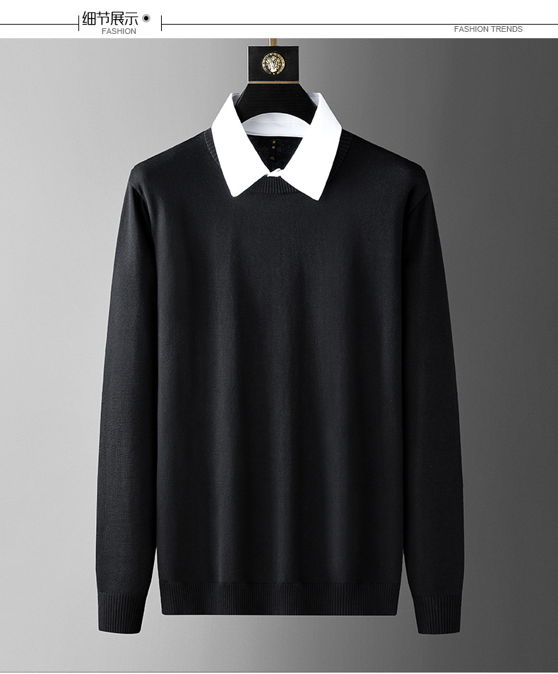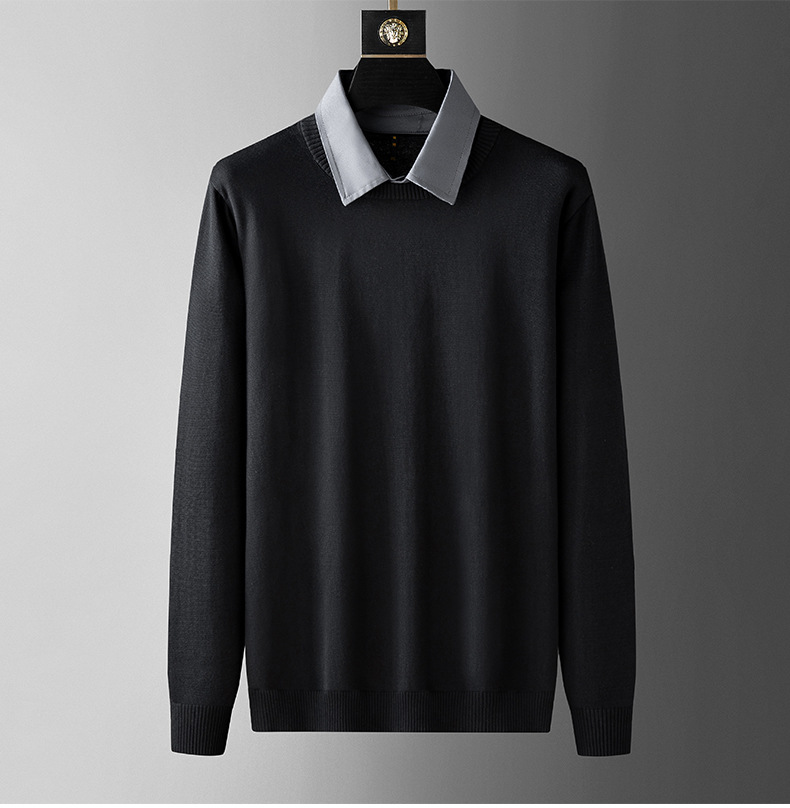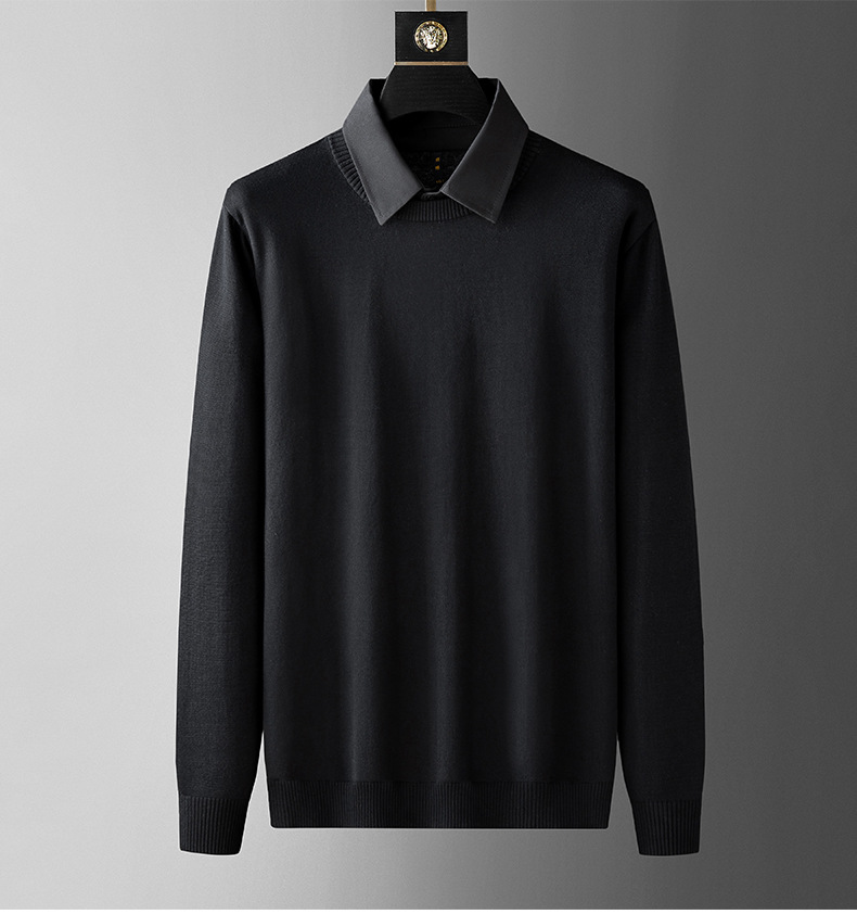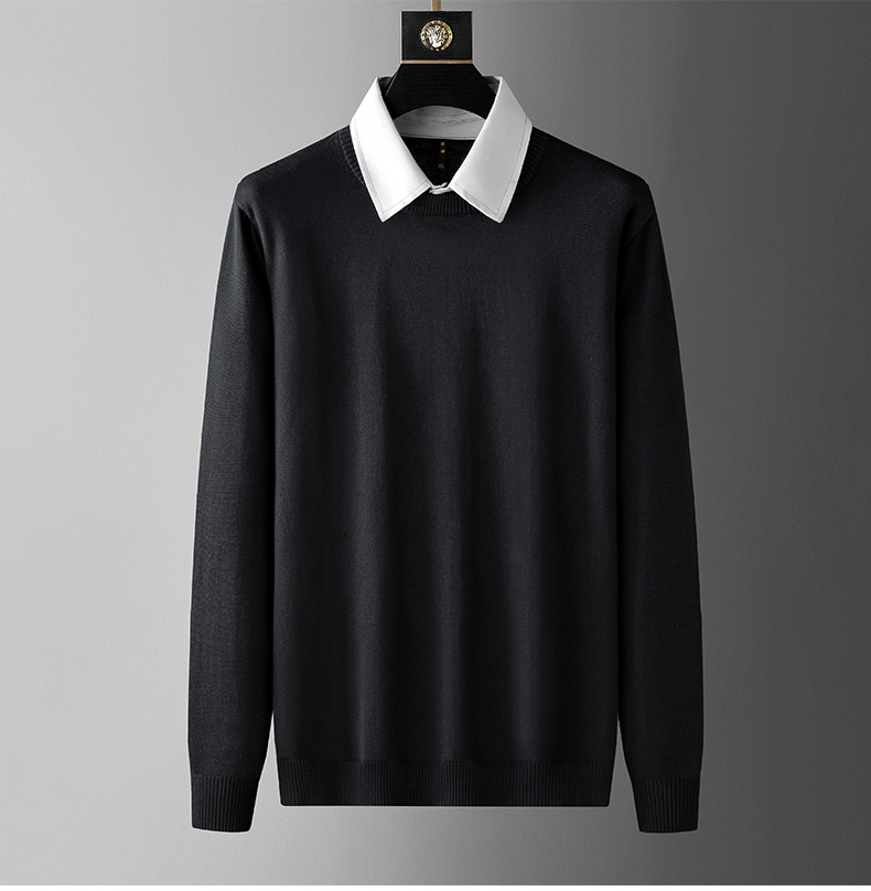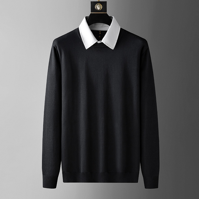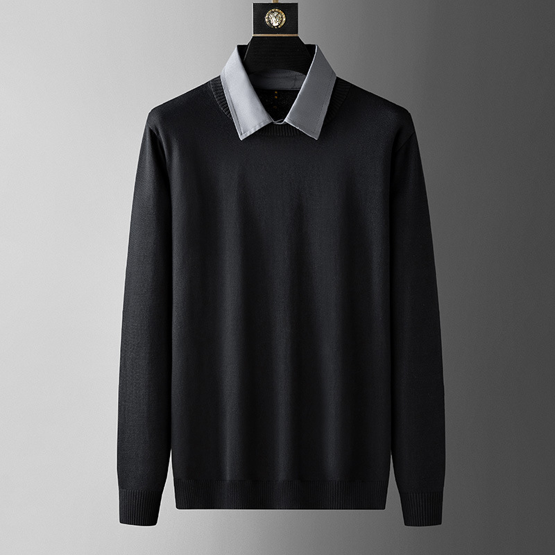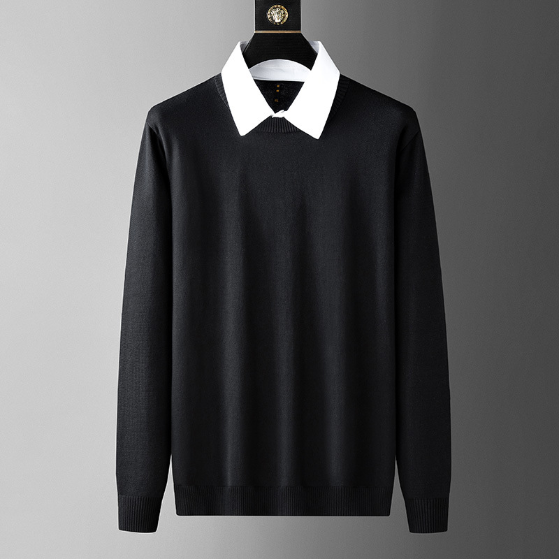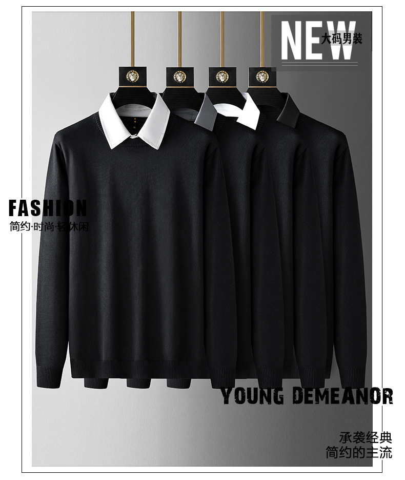 수정 된 플러스 사이즈 단색 뚱뚱한 남자 얇은 스웨터베이스 셔츠 남자의 느슨한 플러스 사이즈 옷깃 스웨터 니트 스웨터