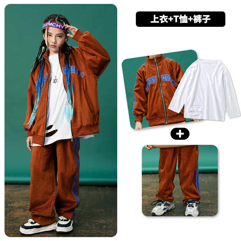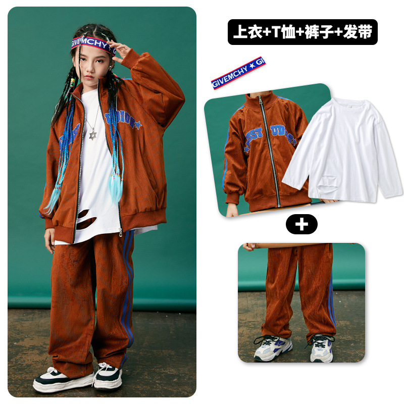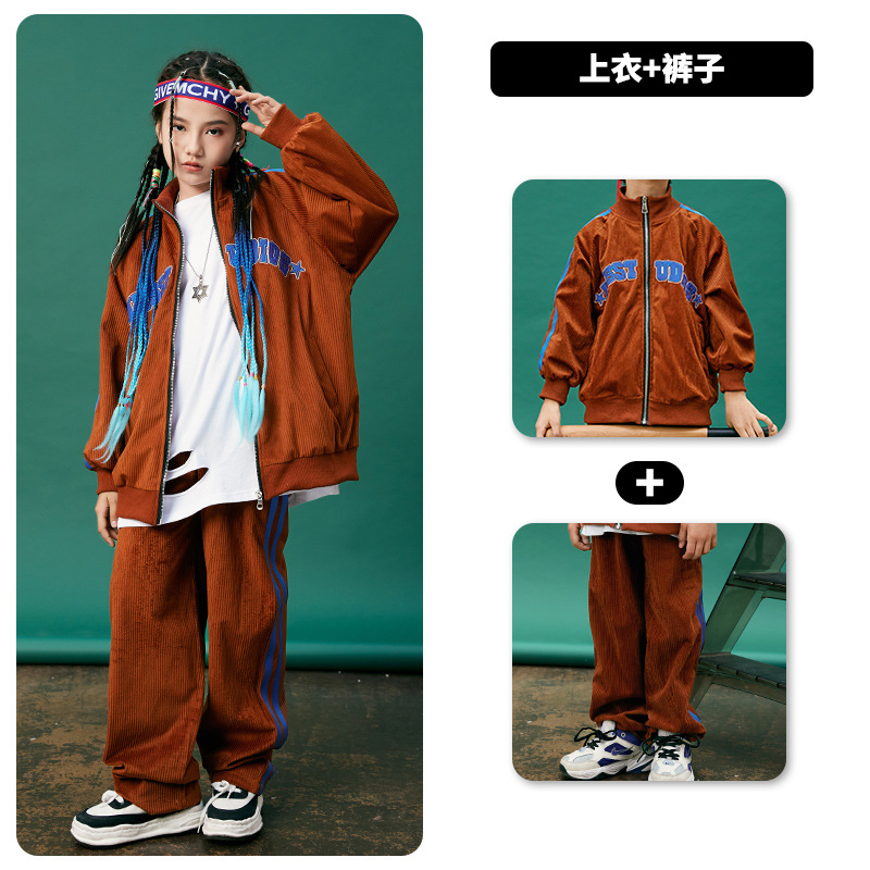 힙합 어린이 패션 의류 소년 설날 공연 옷 소녀 유행 세트 힙합 튀김 거리 어린이 공연 옷 남성스토어 가기