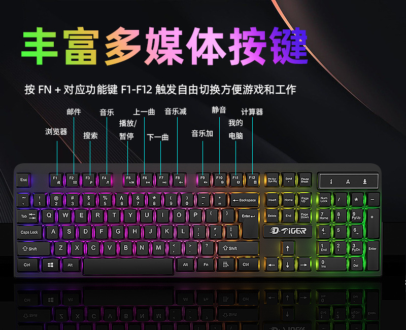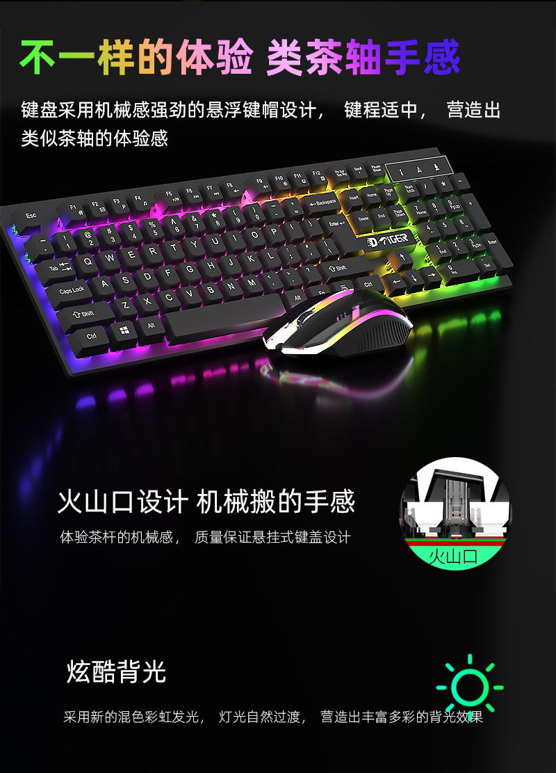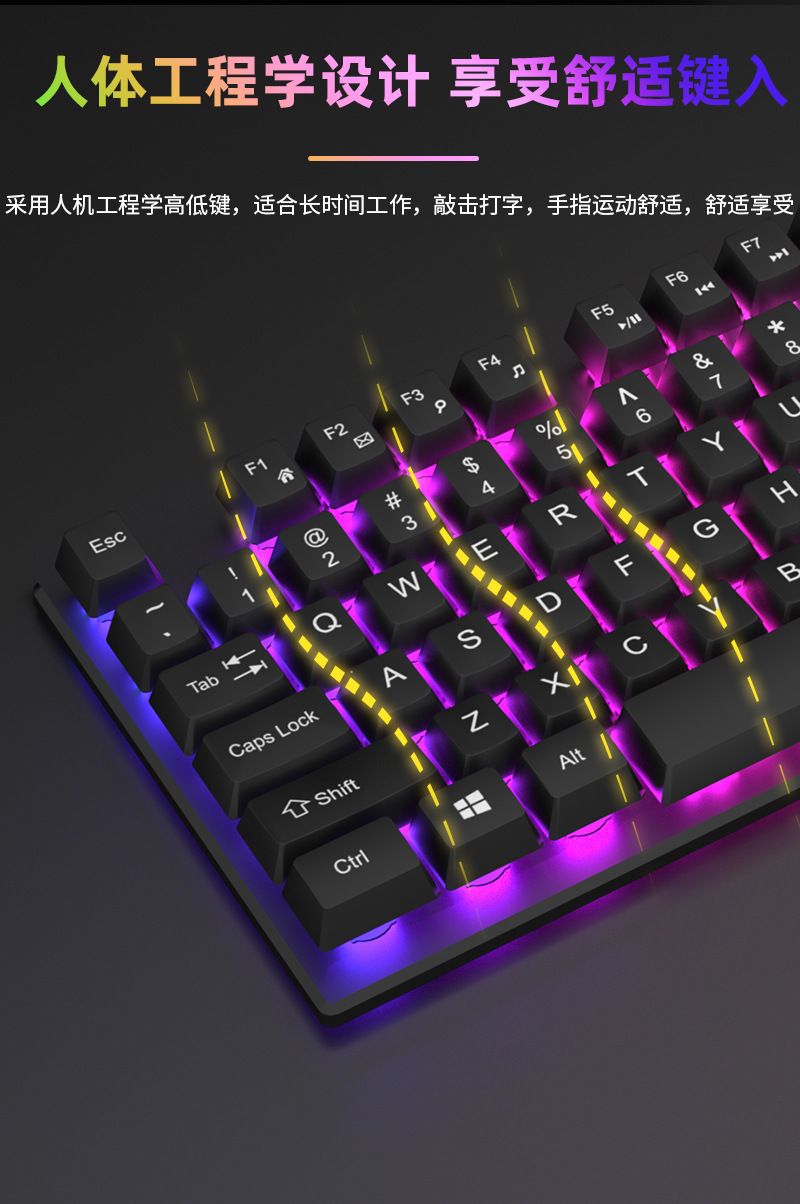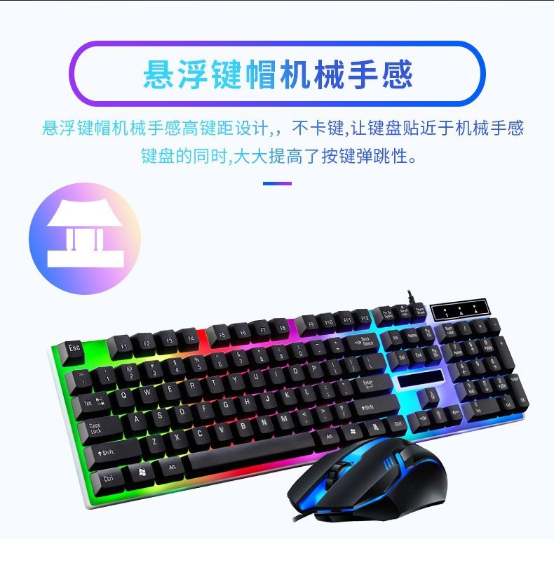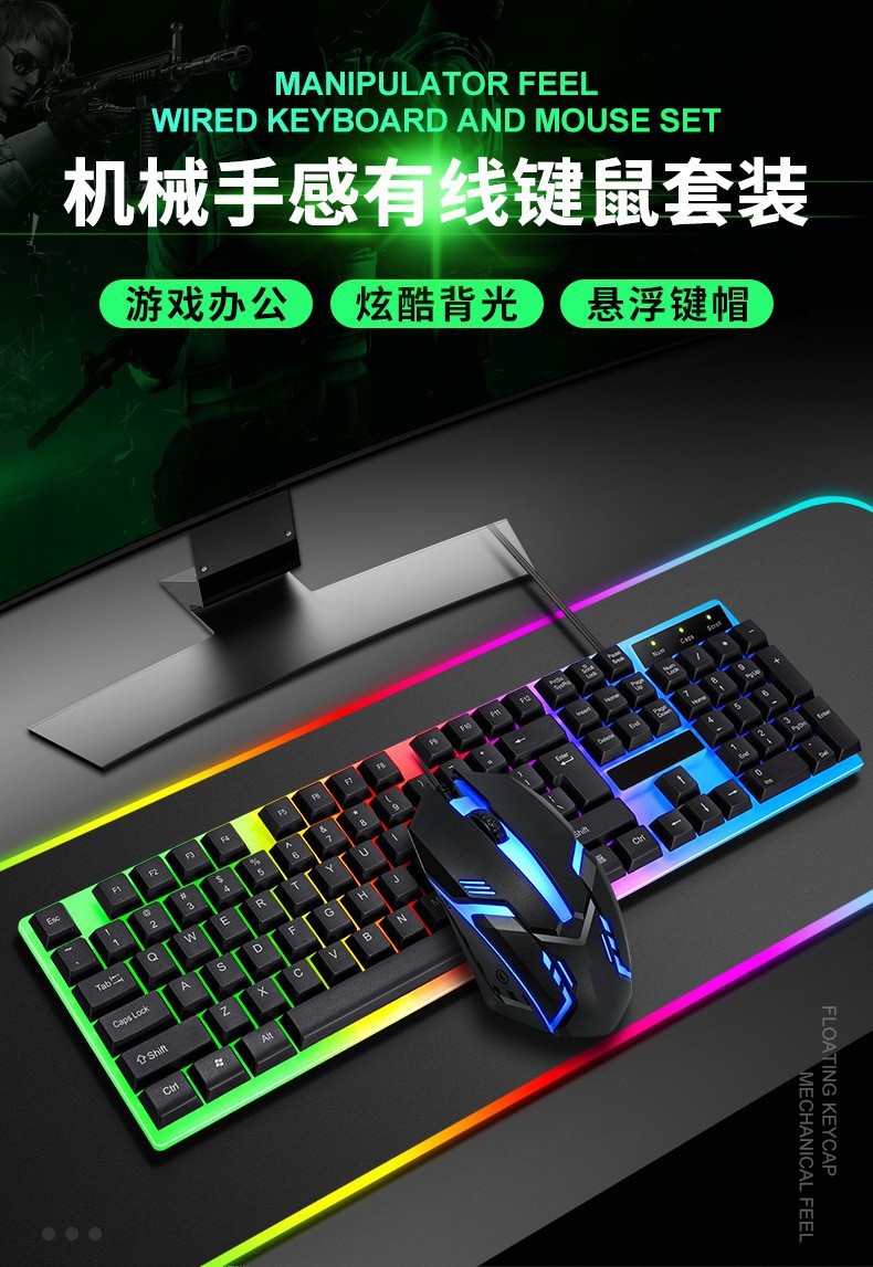 게임 키보드 세트 마우스 백라이트 서스펜션 키캡 단일 키보드 데스크톱 컴퓨터 액세서리 국경 키보드 마우스스토어 가기