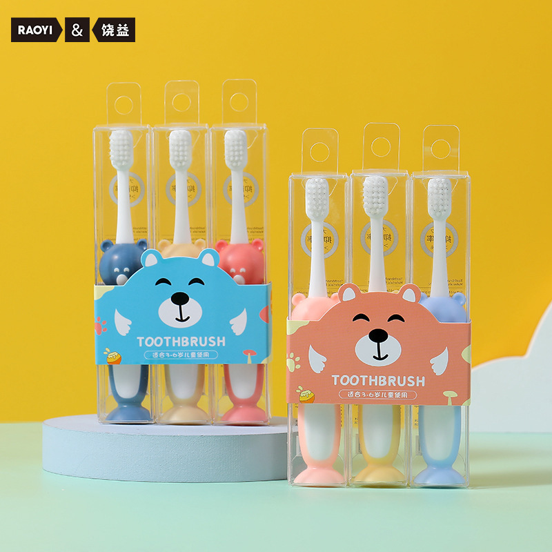 RAOYI 항균 실크 어린이 칫솔 3 팩 3-6 세 만화 곰 아기 부드러운 머리 칫솔 제조 업체 재고 도매스토어 가기