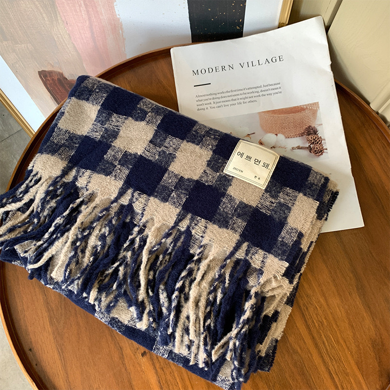 가을과 겨울 새로운 마일러 캐시미어 격자 무늬 스카프 여자 겨울 하이 엔드 올 매치 숄이 두꺼운 따뜻한 스카프스토어 가기