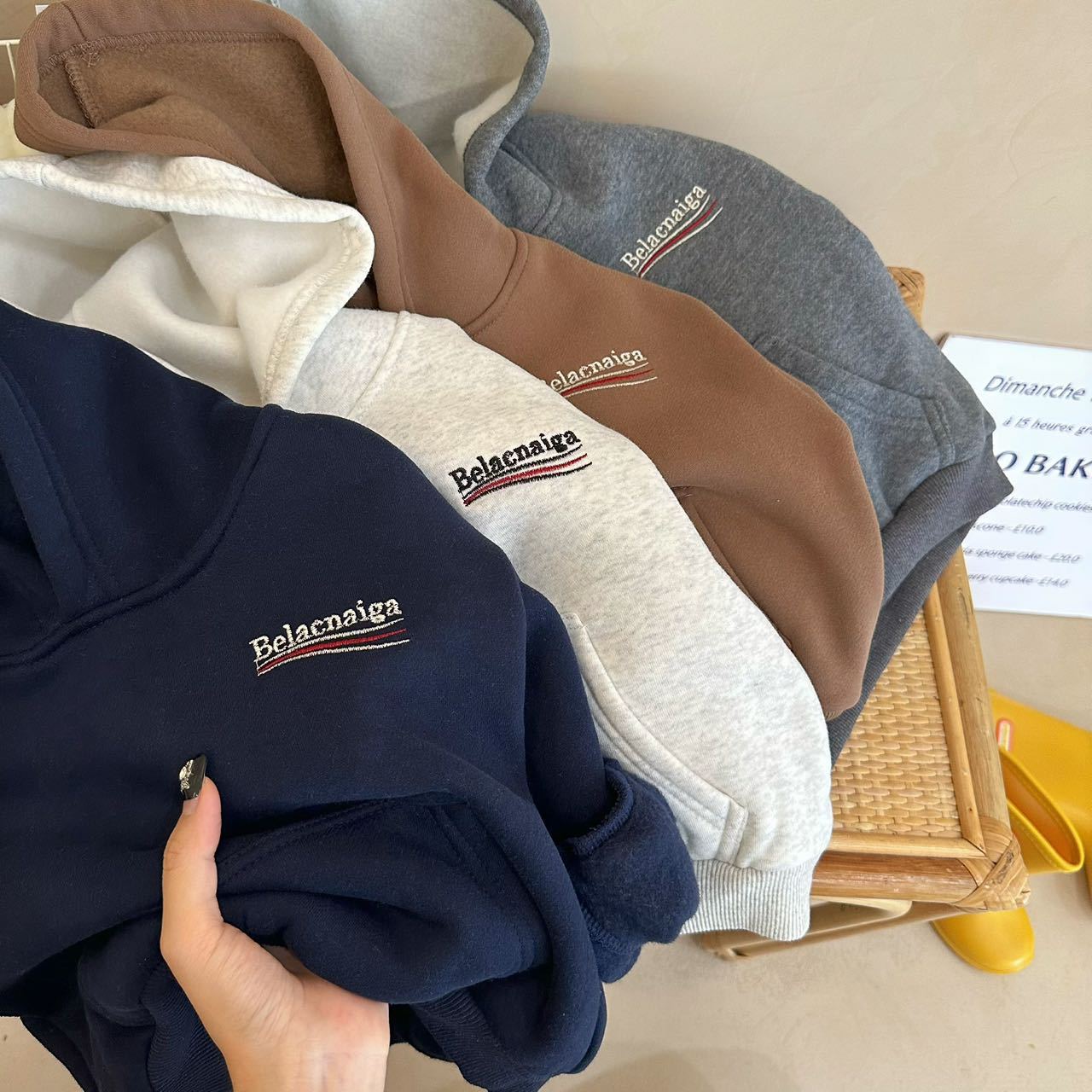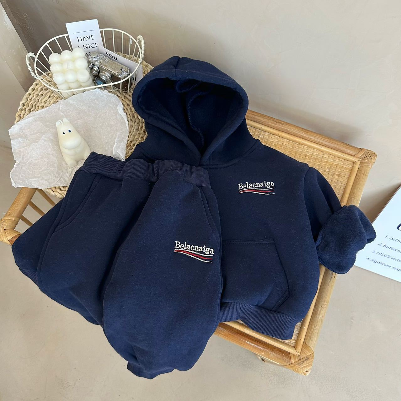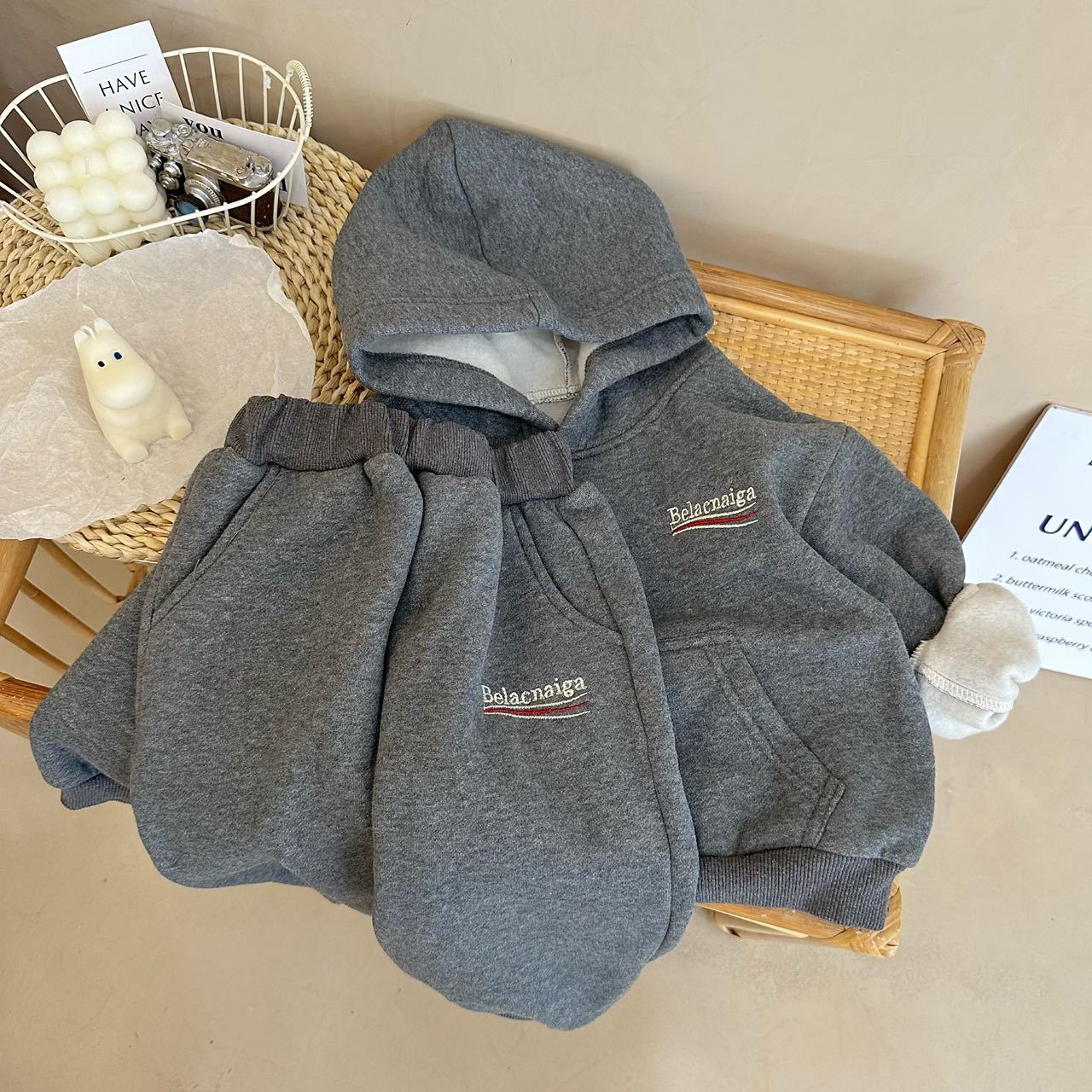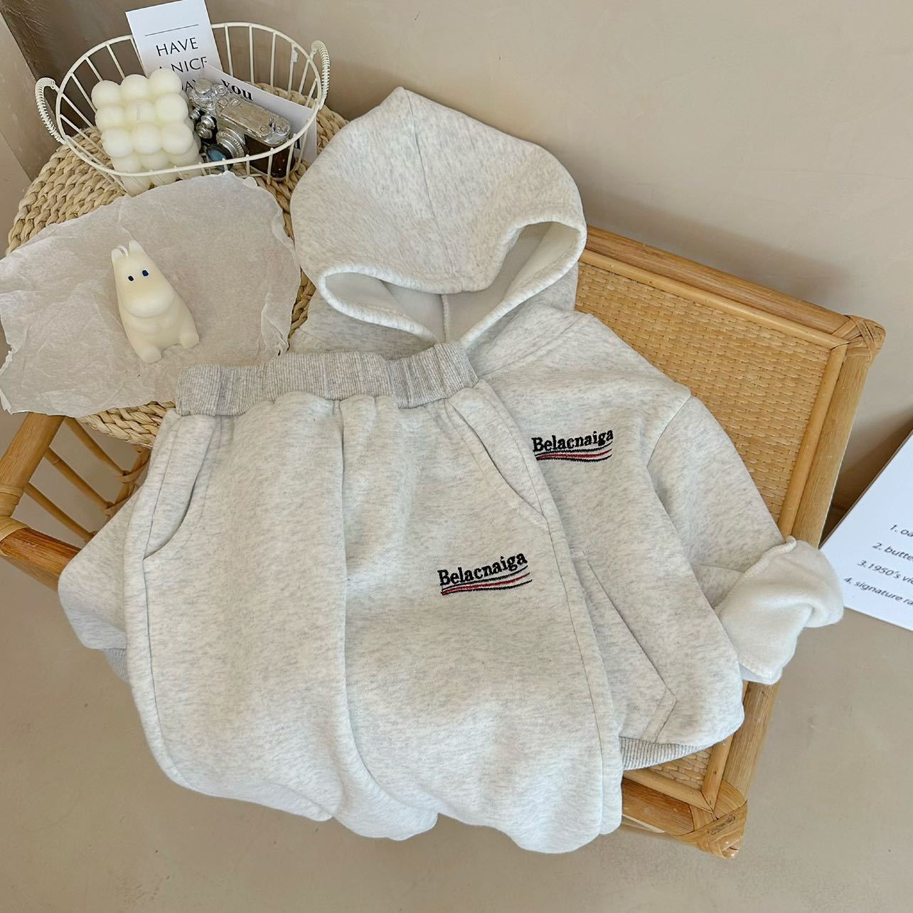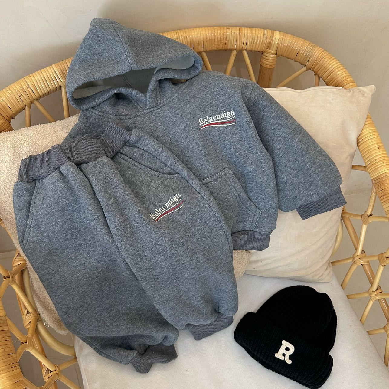 겨울 어린이용 후드 세트 남아 여아용 영어 후드 스웨트셔츠 따뜻한 스웨트팬츠 투피스 세트 유아용스토어 가기