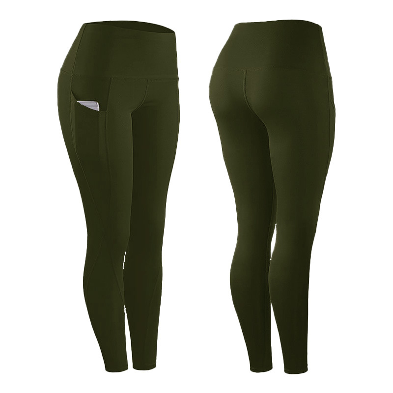 유럽 및 미국 핫 포켓 단색 하이 웨이스트 타이트 피트니스 스포츠 트레이닝 요가 바지 여성용 레깅스