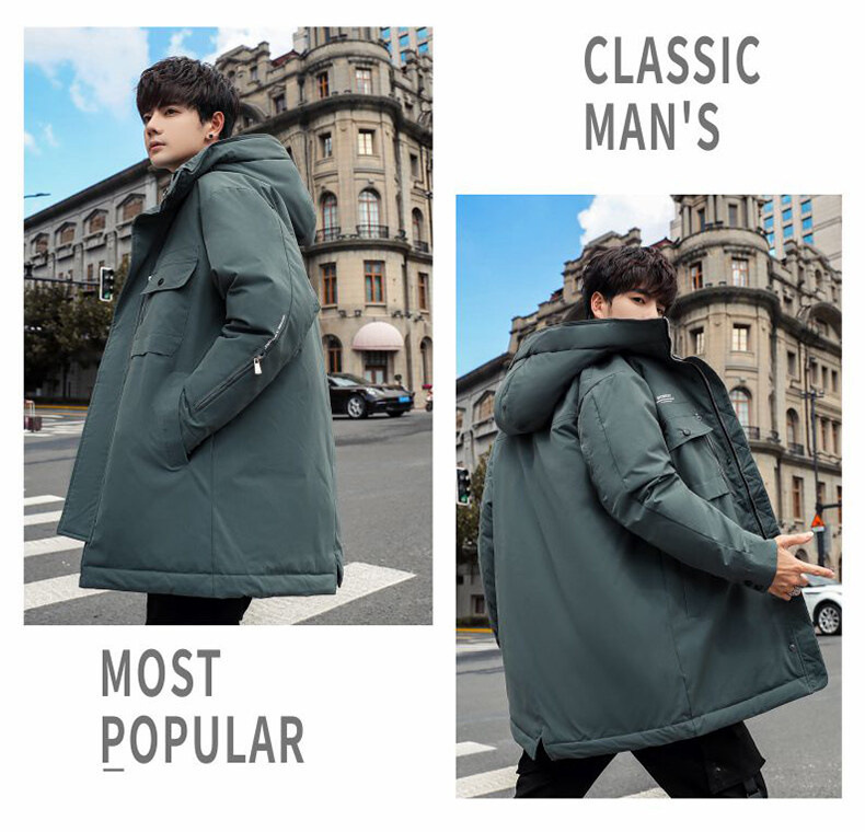 겨울 폭발 2022 두꺼운 후드 다운 재킷 긴 청소년 흰색 오리 다운 따뜻한 캐주얼 유행 재킷 남성용