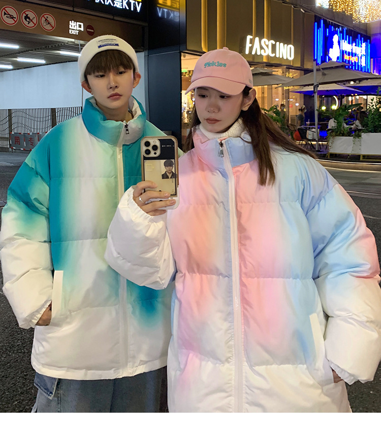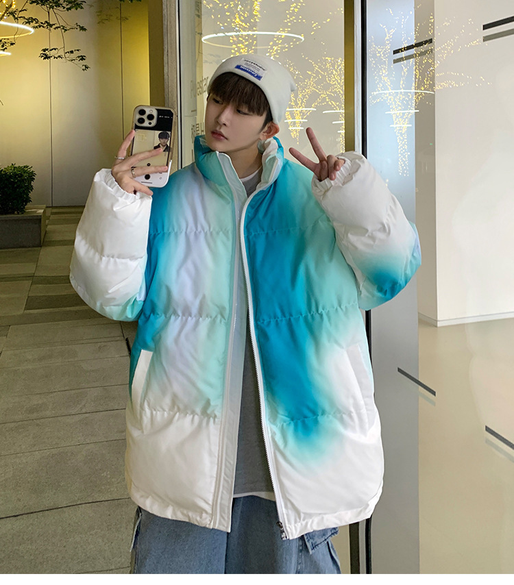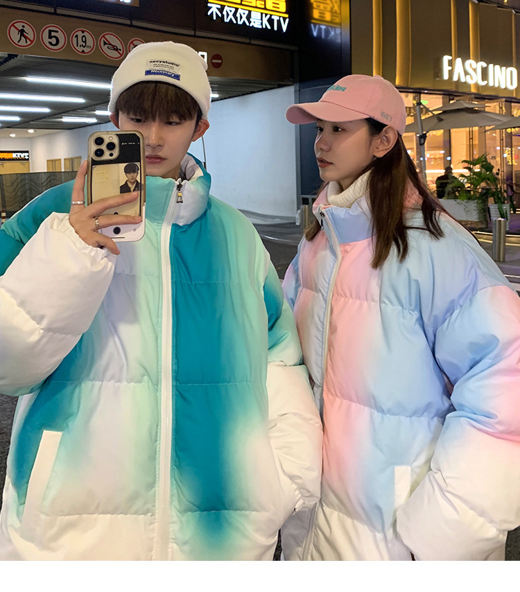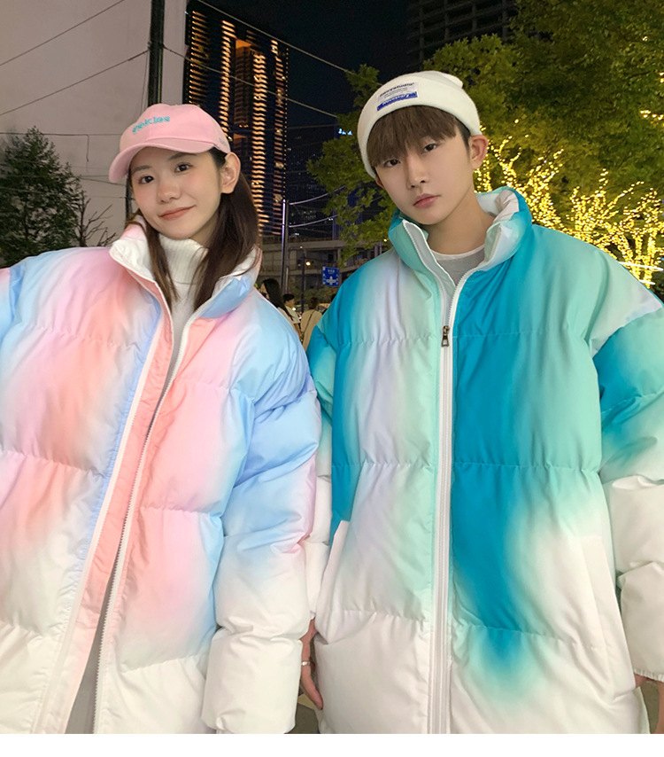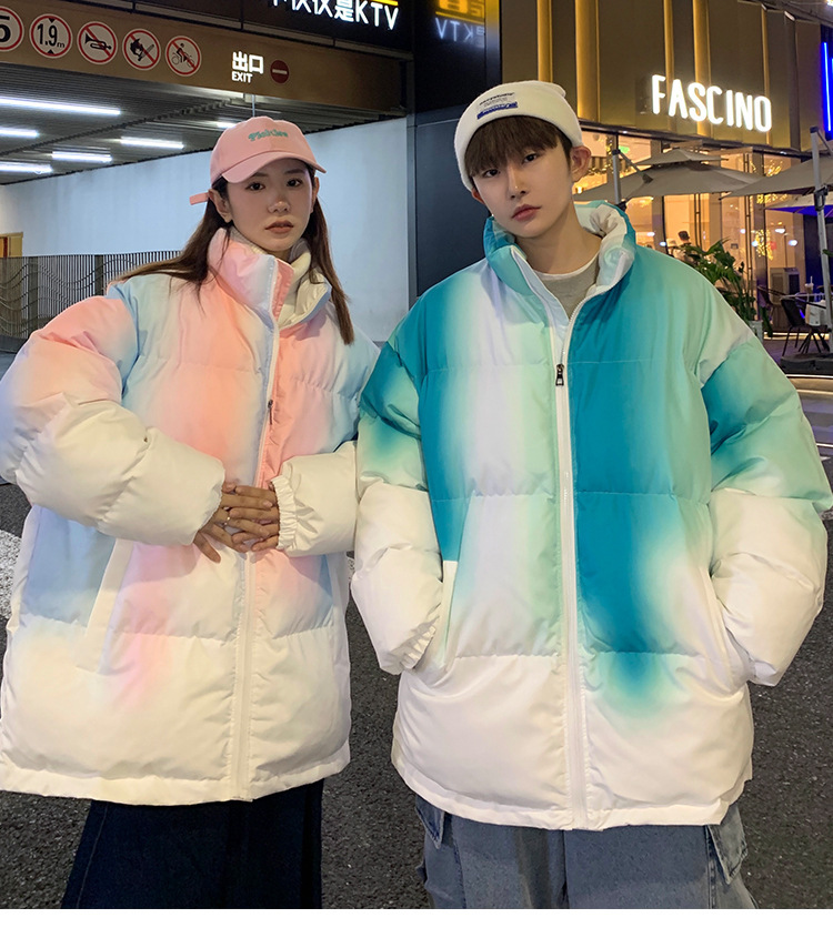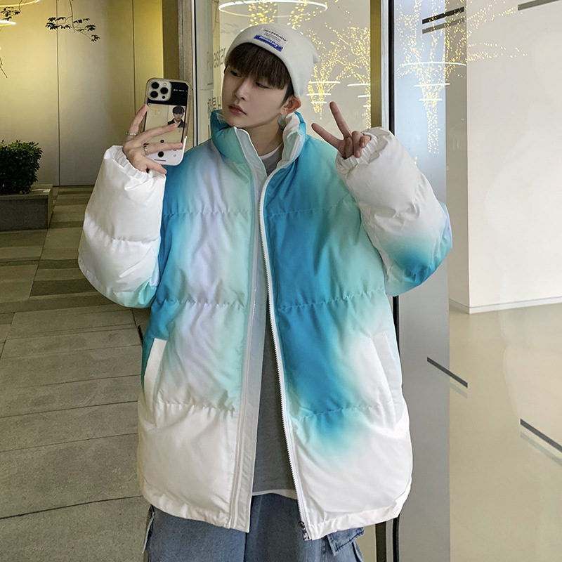 그라디언트 코튼 패딩 재킷 남성 패션 브랜드 다운 코튼 패딩 코트 겨울 두꺼운 코트 남녀 커플 학생 코트 타이 염색 제품스토어 가기