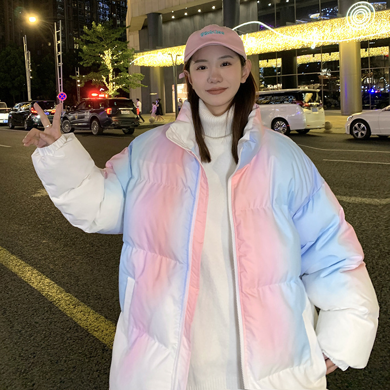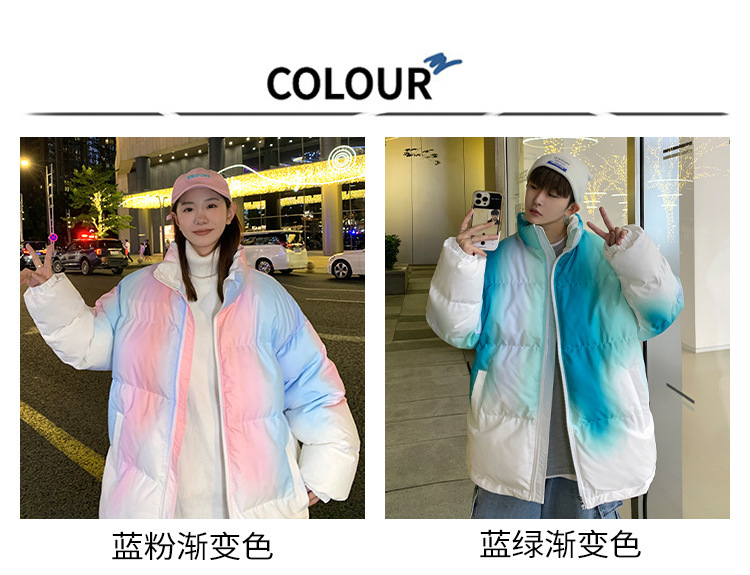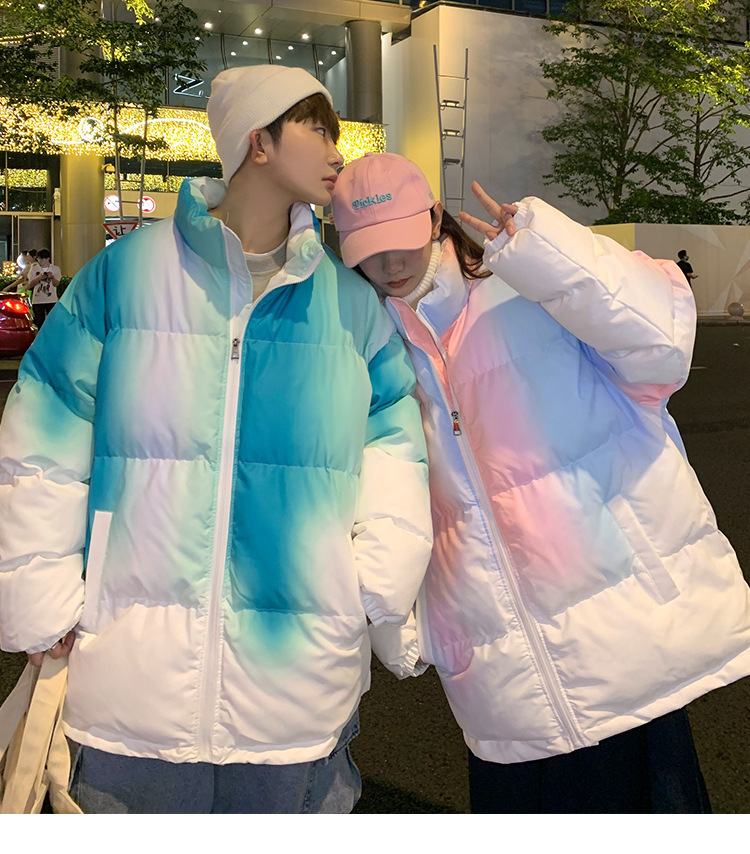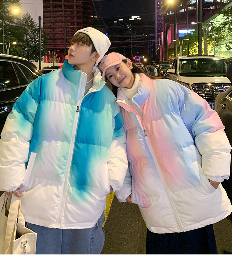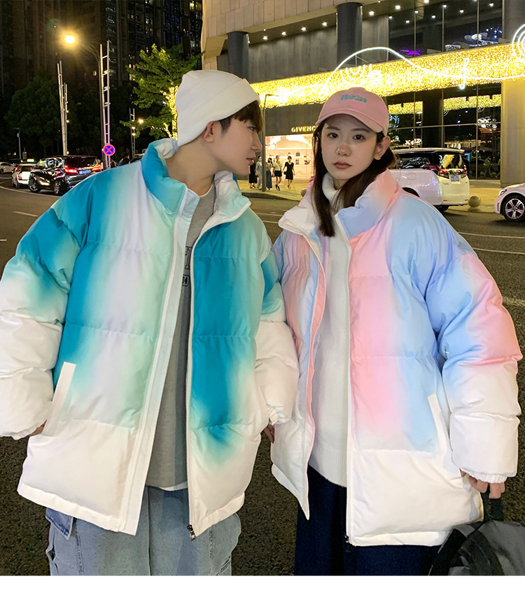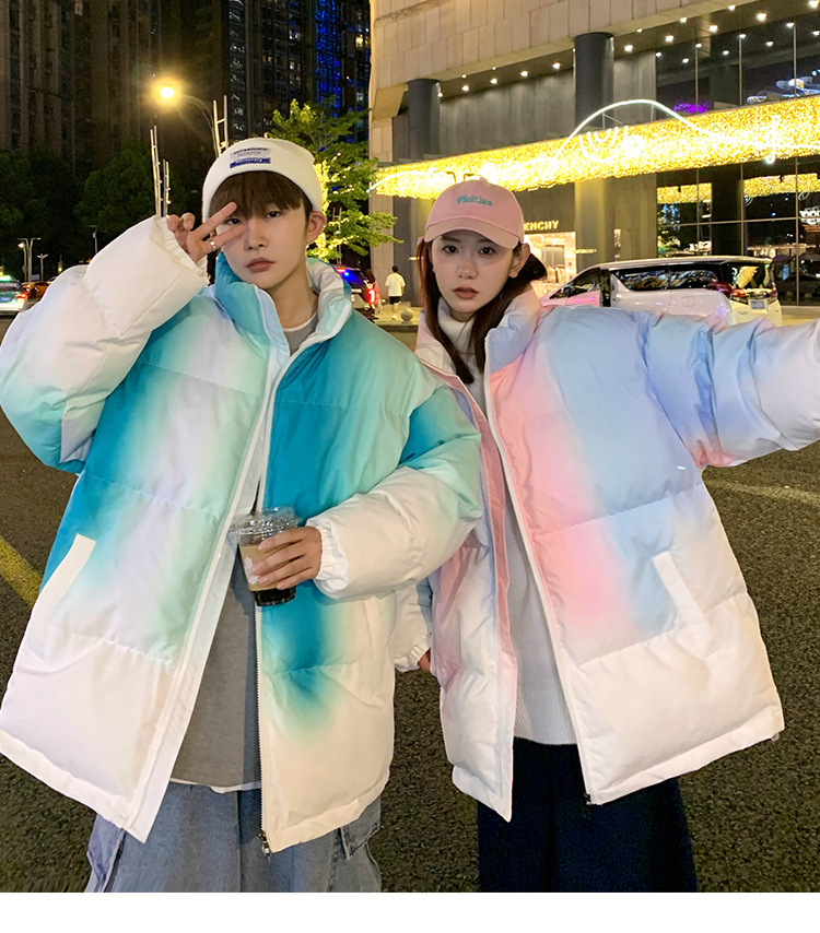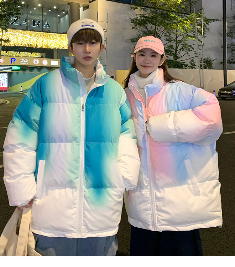 그라디언트 코튼 패딩 재킷 남성 패션 브랜드 다운 코튼 패딩 코트 겨울 두꺼운 코트 남녀 커플 학생 코트 타이 염색 제품스토어 가기